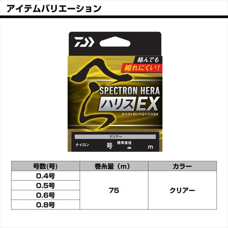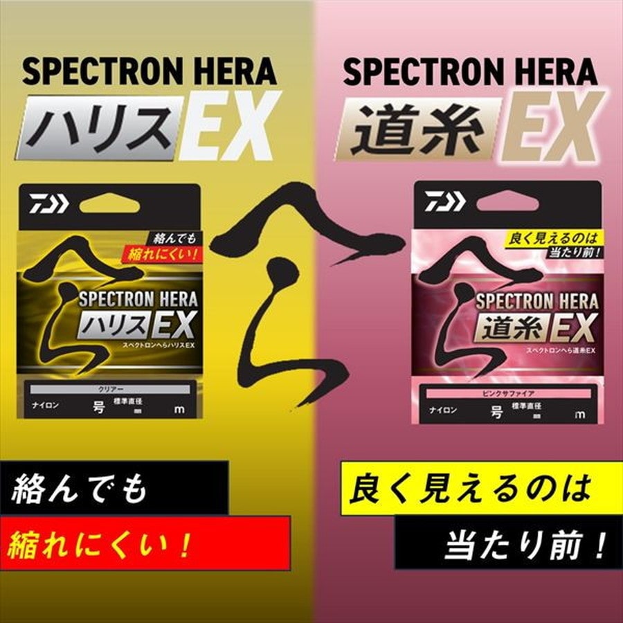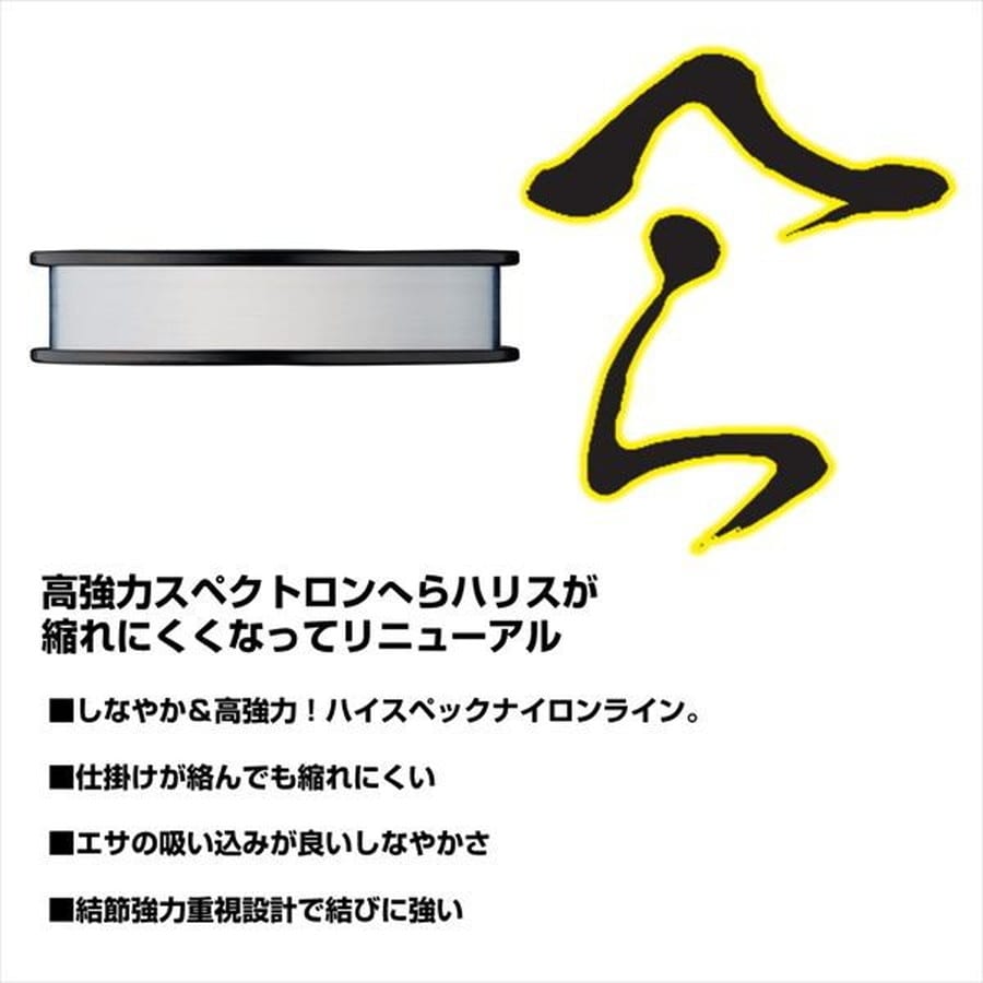 高強力スペクトロンへらハリスが縮れにくくなってリニューアル!しなやかさと高い強度を兼ね備えた、ハイスペックなナイロンライン。仕掛けが絡んでも縮れにくく、扱いやすさが大きく向上。エサの吸い込みが良いしなやかさに加え、結節強力を重視した結びに強い設計。