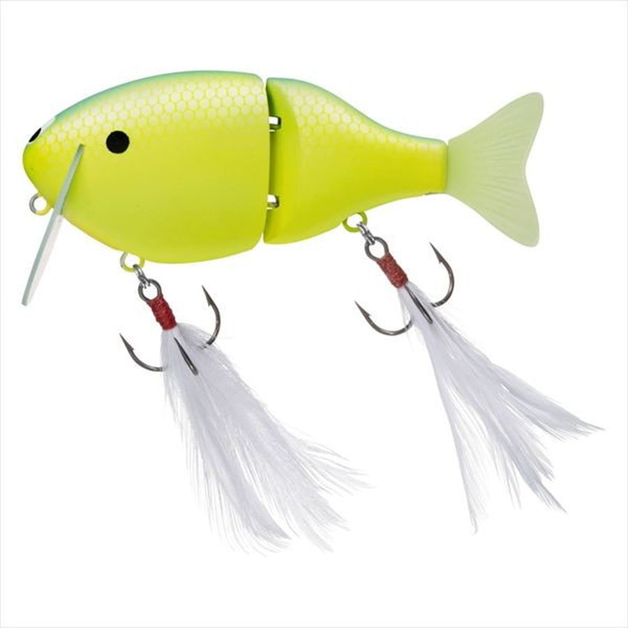 ビッグベイト入門に!移動距離の短さを追求したジョイントふくちゃん!●移動距離を抑えるための大型リップ ●移動距離を抑えるためのジョイント角度 ●移動距離を抑えるためのフェザーフック ●バラシを軽減するサクサススイベルフックアイを採用 ●驚異の貫通力を誇るサクサスフックを搭載 ●根掛かりを軽減する大型リップとショートシャンクフックの組合せ