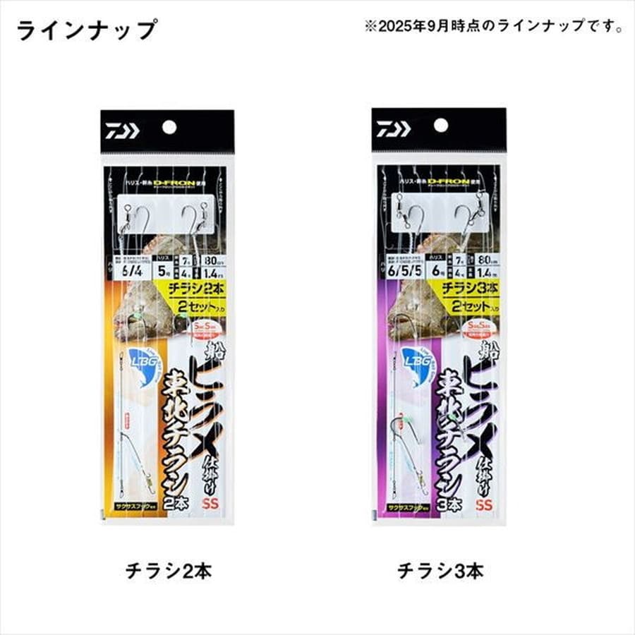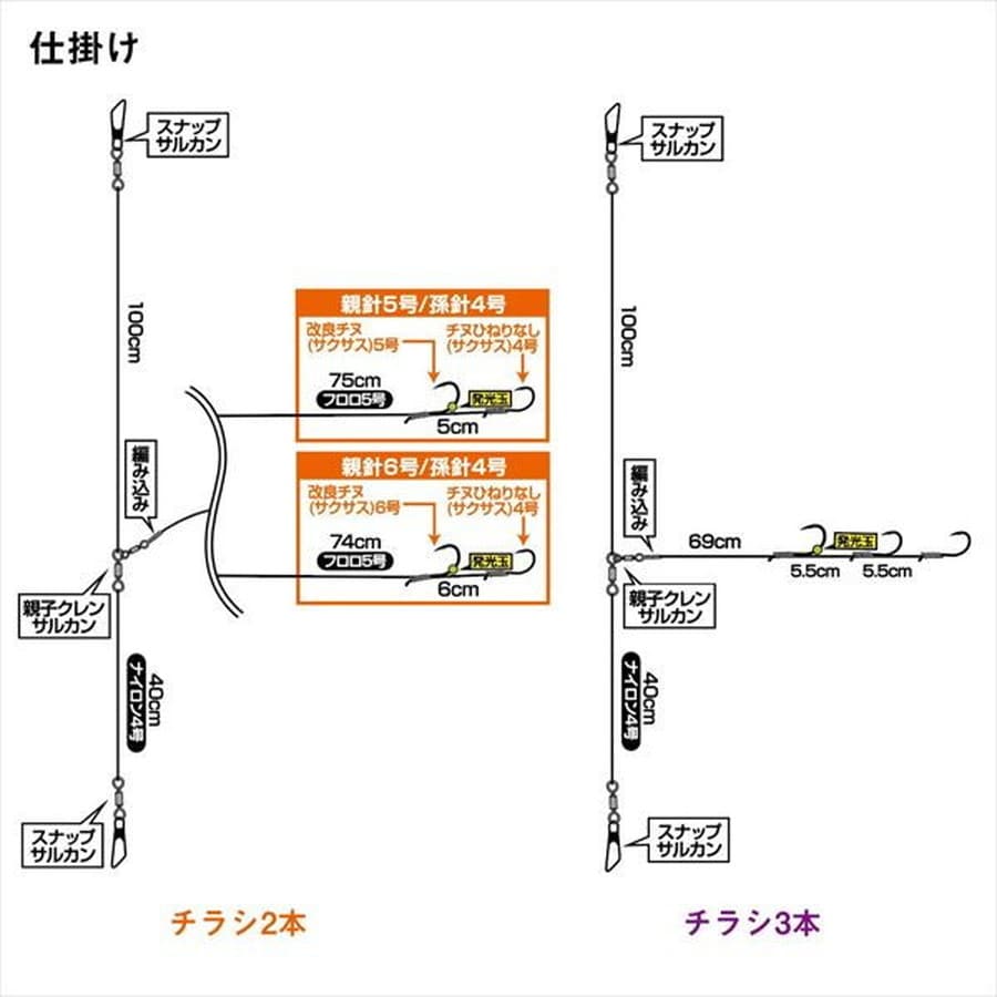 元祖サクサス仕様ヒラメ仕掛けの復刻版が遂に登場!!2015年リリースの快適ヒラメ仕掛SS 東北チラシの復刻版仕掛け。針はすべてにサクサスフック仕様「サクッと刺さる」驚異の貫通力!!ハリス結束部分は「編み込み結び」を採用し、ハリス絡み軽減。チラシ2本(5/4-5,6/4-5)、チラシ3本(6/4-5,6/5-6)の4ラインアップ