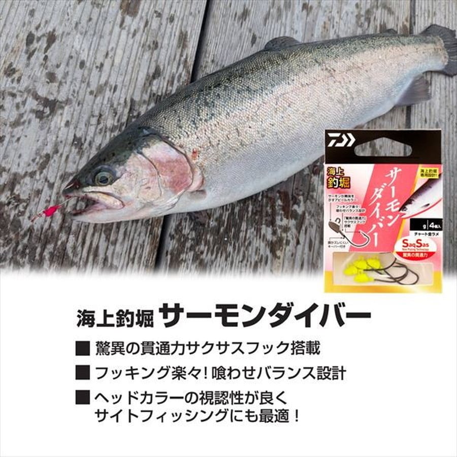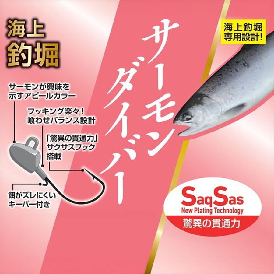 海上釣堀サーモン用アイテム。飲まれづらく手返しの良いジグヘッド型「サーモンダイバー」