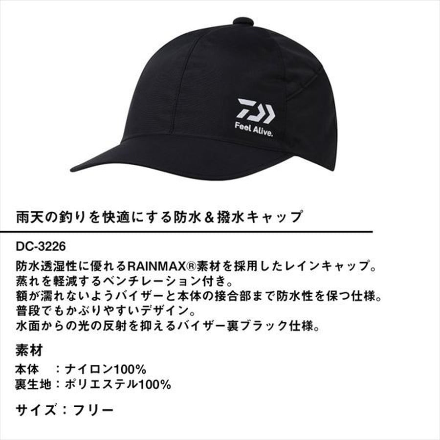 雨天の釣りを快適にする防水&撥水キャップ。防水透湿性に優れるRAINMAX素材を採用したレインキャップ。蒸れを軽減するベンチレーション付き。額が濡れないようバイザーと本体の接合部まで防水性を保つ仕様。普段でもかぶりやすいデザイン。水面からの光の反射を抑えるバイザー裏ブラック仕様。