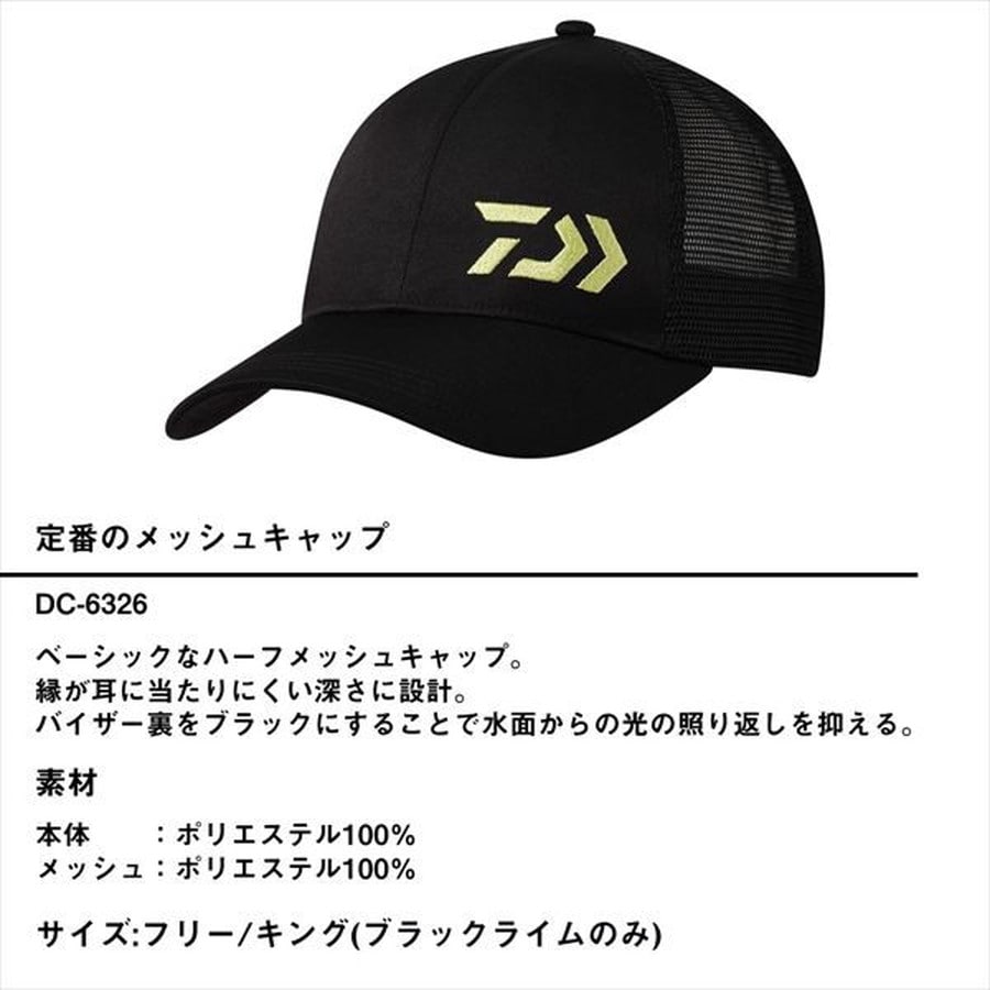定番のメッシュキャップ。ベーシックなハーフメッシュキャップ。縁が耳に当たりにくい深さに設計。バイザー裏をブラックにすることで水面からの光の照り返しを抑える。