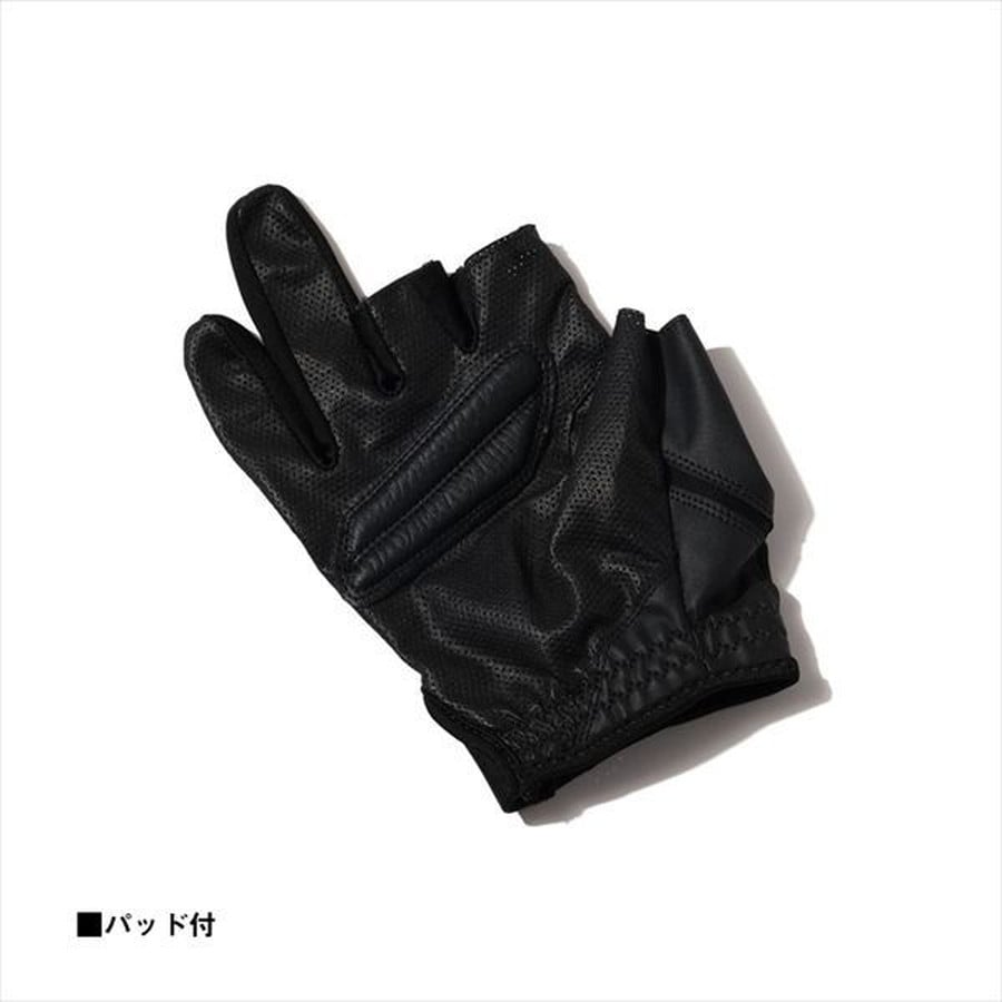 掌のパッドがロッド操作をサポート。甲側にはUVケア(UPF50+)/吸水速乾機能のある素材を採用。掌側にはグリップ力のある薄手の合成皮革を使用。パンチング加工を施し不快な汗蒸れ、濡れを軽減する。また、柔らかいパッドを配置し快適なロッド操作をサポート。ベルトレス仕様で、糸絡みのリスクを軽減する。