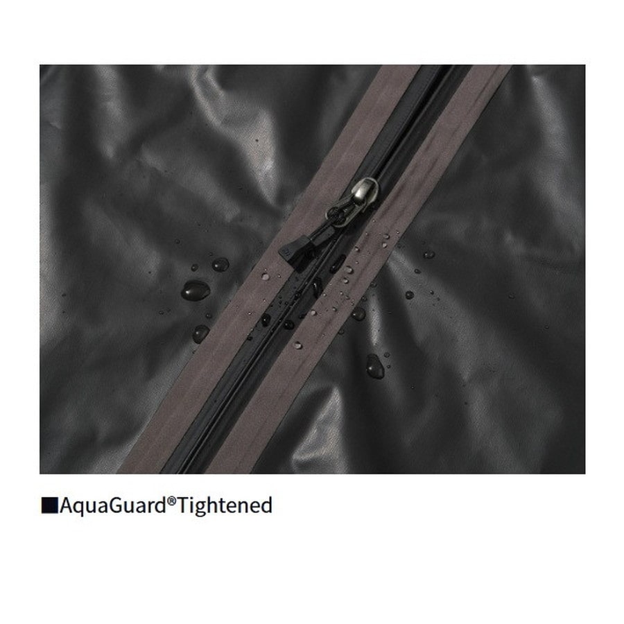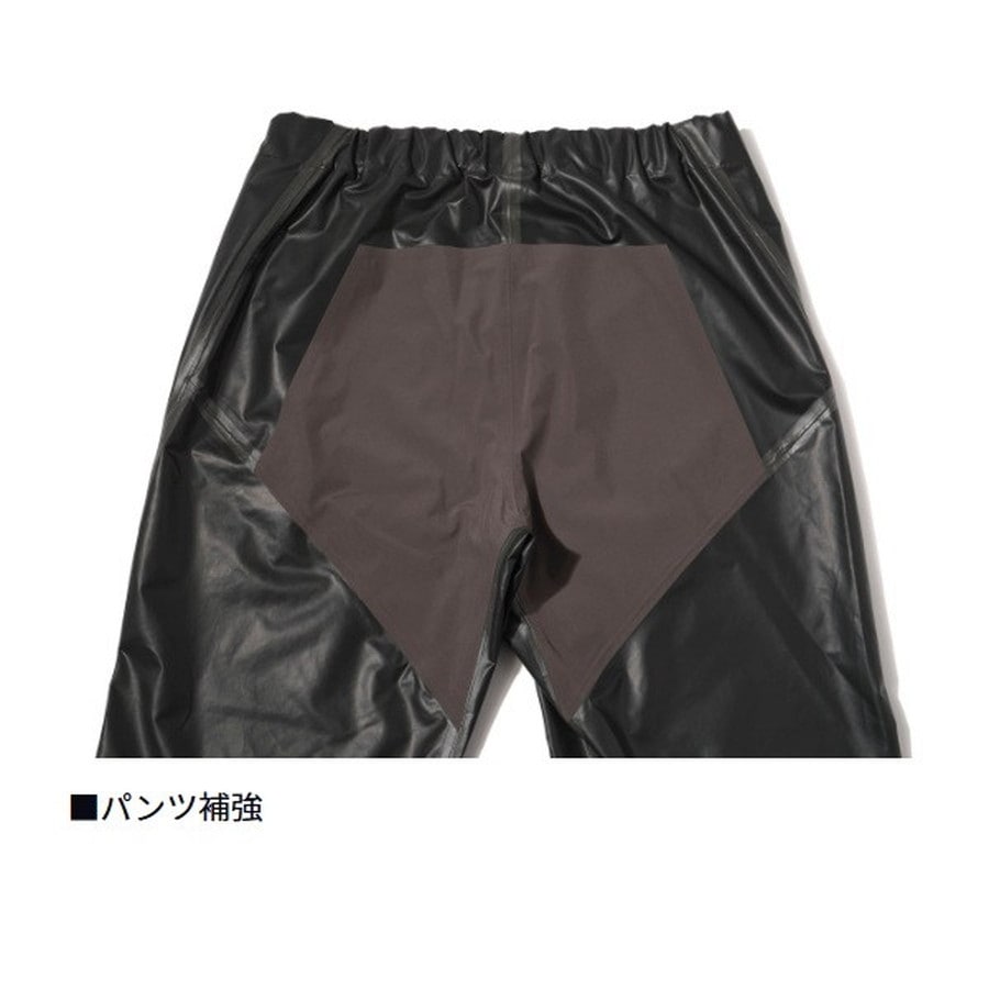 汚れの付きにくさと透湿性を兼ね備えたレインスーツ。汚れや海水が付いても、水でさっと洗えば落ちやすい素材を開発。表側に防水層をもってくることで、水が生地に染み込まず、ドライで乾きやすい。耐水圧(10,000mm)と透湿性(4,000g/m2)を併せ持つため、衣服内が蒸れにくく、気温の高い時期でも快適に着用可能。通常レインウエアと同様のシルエットにすることができ、動きやすい。フロントファスナーには、YKKとの開発で実現した「AquaGuard Tightened」を搭載。特殊な構造により、従来の止水ファスナーより耐水性が大幅に向上。それにより、ファスナー下の持ち出し(生地)をなくすことができ、よりしなやかに、軽量化するとともにファスナーの生地噛みがなくなり、スムーズな開閉が可能。※透湿防水層を最外面に配した特殊構造のため、過度の擦れに弱い性質があります。※特殊な防水加工を施しているため、撥水スプレーは使用しないでください。
