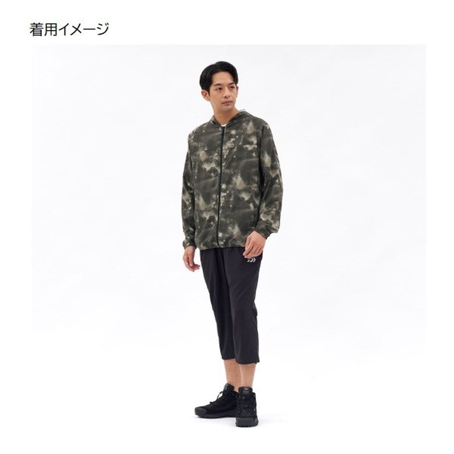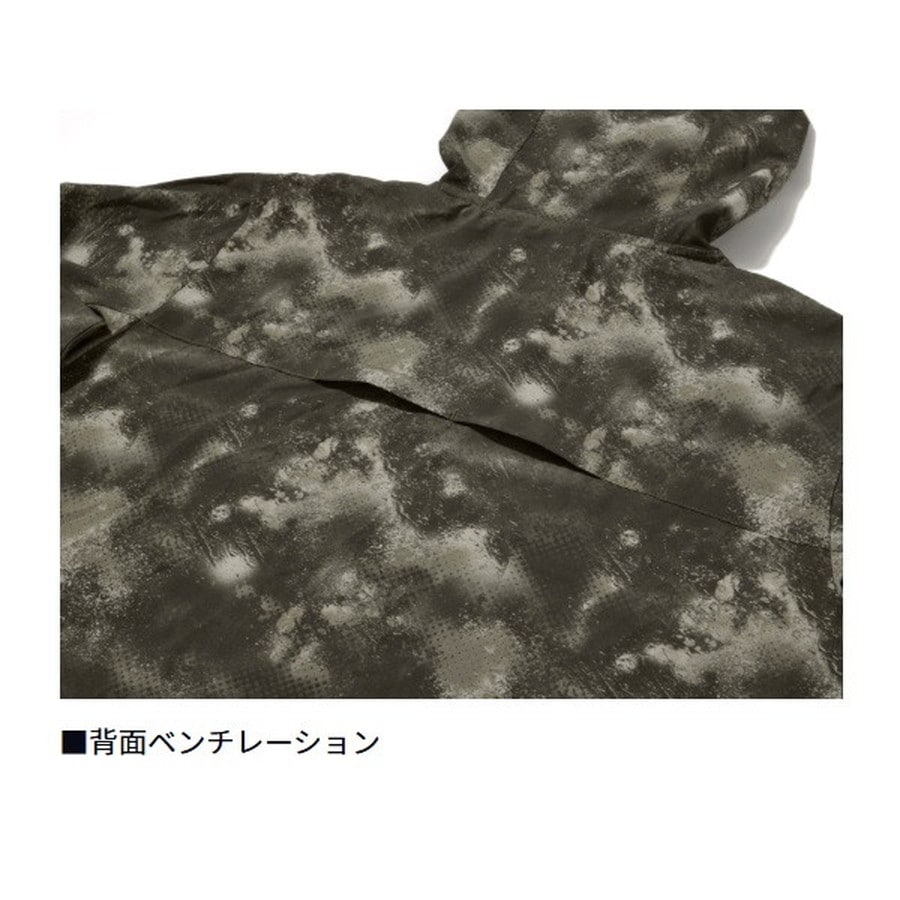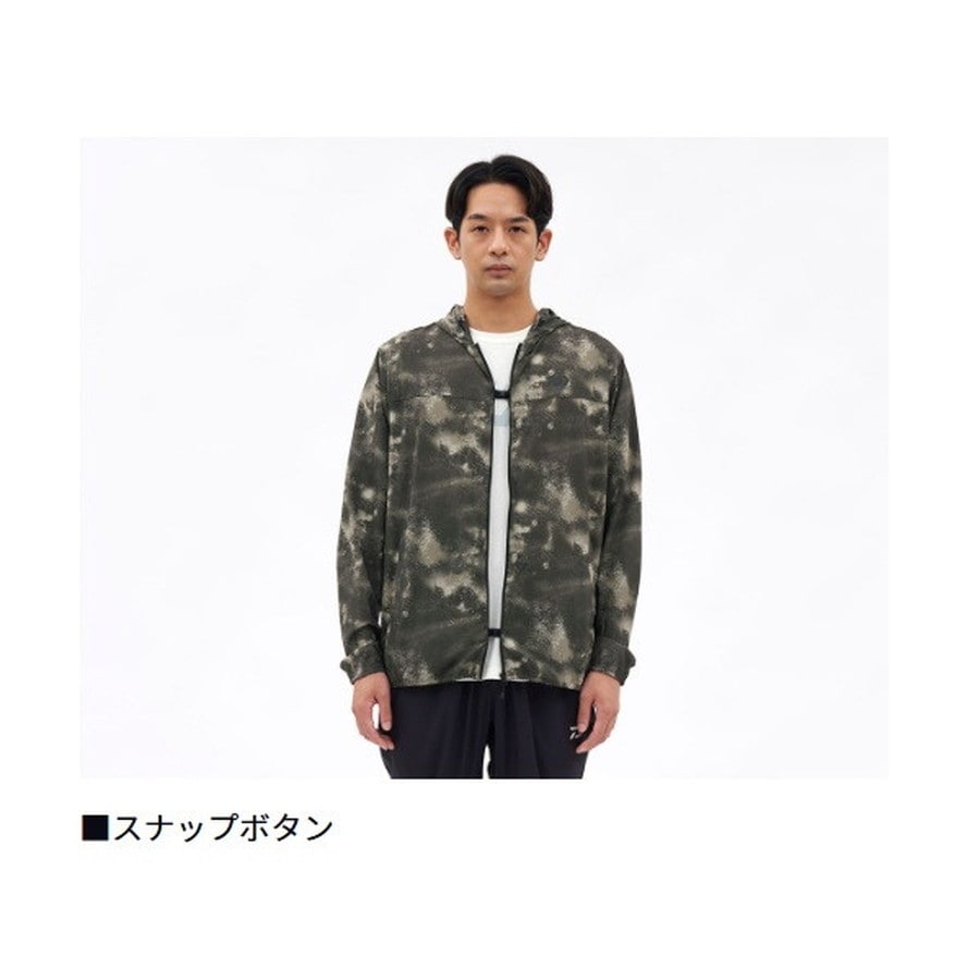 撥水×ストレッチ×軽量素材で水辺シーンをより快適に。UVケア(UPF50+)、軽量でストレッチ性もあるため、動きやすい着用感が特徴。撥水加工を施すことで、不快な濡れ感を軽減。ファスナーを全開にした状態で仮止めできるスナップボタンを2か所配置し、背面にもベンチレーションを配しているため、乗船時なども裾のバタつきを気にせず風を最大限に受けることができる。フード部分に小さく収納できるポケッタブル使用。収納後はDカンなどでかけられるループ付き。