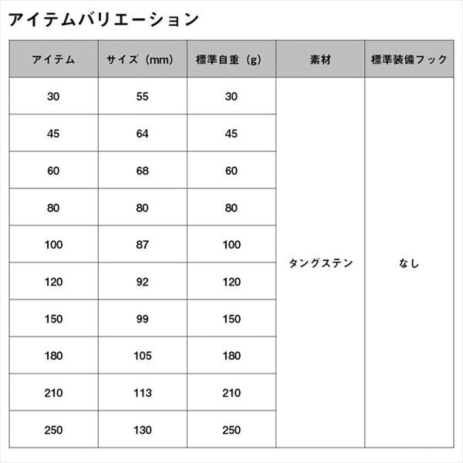 ベイトフィッシュに超セレクティブなスーパータフコンディションにも対応。タングステン製高比重コンパクトキャスティングジグ。「より小さいシルエットで重いジグを」というニーズに応えた高比重素材ジグ。青物のナブラやボイルはあるのに、従来のジグでは大きすぎて食わない、かといって小さいジグではポイントに届かない。ターゲットが極小のベイトを選んで捕食しているシチュエーションで爆発的な威力を発揮する。