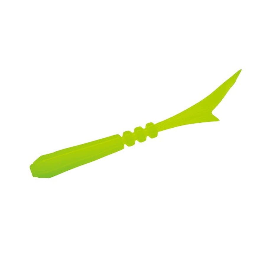 デカメバルのスタンダードワーム(2.2inch)。月下美人ソードビーム1.7インチ譲りの縦扁平ボディはスイミング時の直進性能と素早くキレのあるダートアクションを生み出し魚を魅了する。また、ややハリのあるマテリアルは「静」と「動」のメリハリあるアクションに貢献。ただ巻きでは余計なアクションを最小限に抑え、神経質なメバルに有効。アクションを加えればソードテールが強く水を押し、リアクションバイトを誘発させる。シチュエーションに応じたアクションで老獪なデカメバルを魅了する。