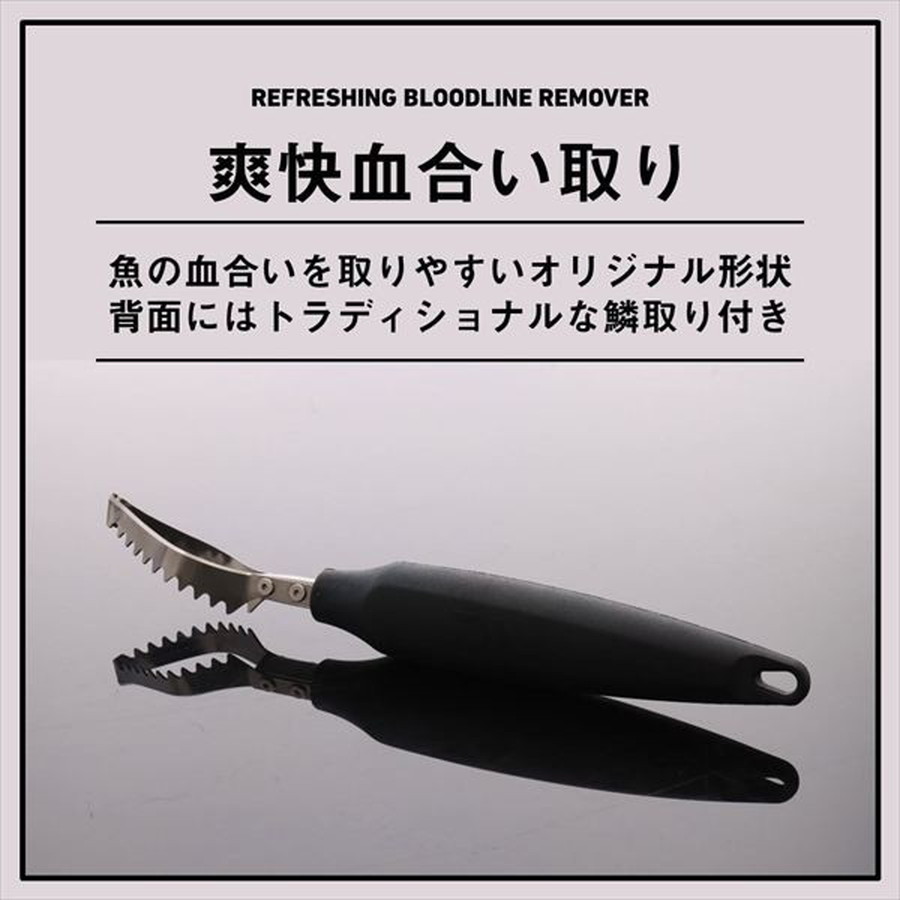 魚の血合いを取りやすいオリジナル形状!背面にはトラディショナルな鱗取り付き。「爽快シリーズ」は、釣りの楽しみを「食」に繋げる、魚を捌くことにこだわった新シリーズ。魚の血合いを取りやすいオリジナル形状。刃部背面には鱗取りも搭載。サビに強いステンレス素材を使用。S字フックなどでぶら下げれる本体形状。握りやすさ、力の入れやすさにこだわったオリジナル形状グリップ。