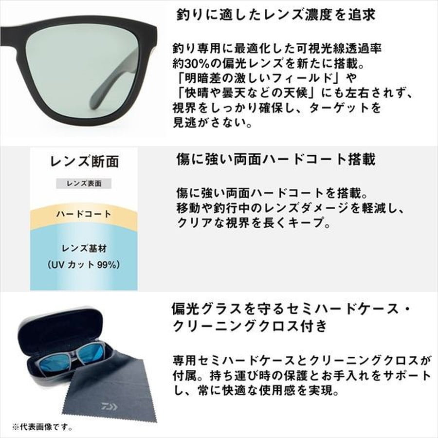 釣りに最適な視界をキープするコストパフォーマンス抜群の偏光グラス新登場!釣りに必要な基本性能をしっかりと備えた、コストパフォーマンスに優れた偏光グラス。アウトドアサングラスの延長ではなく、釣り専用として最適なレンズ濃度を徹底追求。水中の変化や魚の動きを見逃さず、晴天・曇天を問わず快適な視界をキープ。軽量かつ薄型のトリアセテートレンズを採用し、長時間の使用でもストレスを感じにくい設計。さらに、両面ハードコート加工により、傷にも強く、耐久性にも優れている。セミハードケースとクリーニングクロスが付属し、持ち運びやメンテナンスも快適。釣り初心者からベテランアングラーまで、あらゆるフィールドで活躍する1本。不動の人気を誇り、釣りから普段使いまでキマるウェリントンタイプ。かける人を選ばない一本。