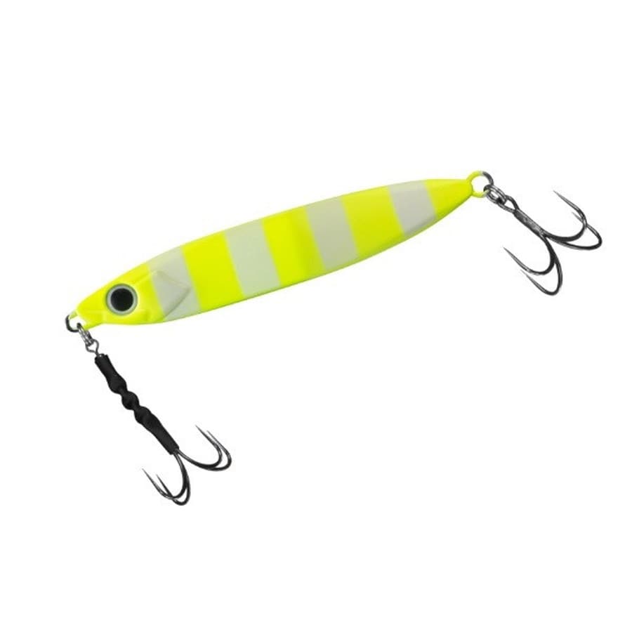 鏡牙JIG BASIC×タチジギフック一閃SS クワトロ センターバランス設計のスタンダードモデル!鋭く研ぎ澄まされたヘッド形状が、水の抵抗を大幅に軽減。引き重りを抑え、アングラーの疲労を最小限に。刻一刻と変化するタチウオの「食わせの間」にも、スムーズに対応できる設計。ジャーク後にはナチュラルなフォールを演出し、ジグが横向きにスライド。タチウオに違和感を与えず、思わず口を使わせる「喰わせの姿勢」を作り出す。フックにはタチジギフック一閃SS クワトロを採用。高いフッキング性能と貫通力を兼ね備え、ターゲットのアゴを瞬時に貫く。