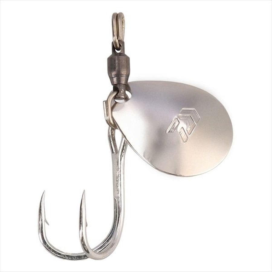 早巻きでもしっかりと顎を貫く、太軸掛けタイプのブレードジギングアシストフック!サワラや青物など大物をターゲットとした「ブレードジギング専用アシストフック」。フックは、太軸掛けタイプの針により、ブレードと高速回転しつつも掛かりの早さとしっかりとターゲットの顎を貫くパワーを両立。ブレードには、カタクチイワシなどのメインベイトの泳ぎを意識した、大きな波動を出すコロラドタイプを採用。ブレードカラーがゴールドとシルバー、フックはシングルフックとダブルフックの計4種類。※シングルフックは「TGベイトBLJ」に付属のものと同様(ブレードのカラー違い)