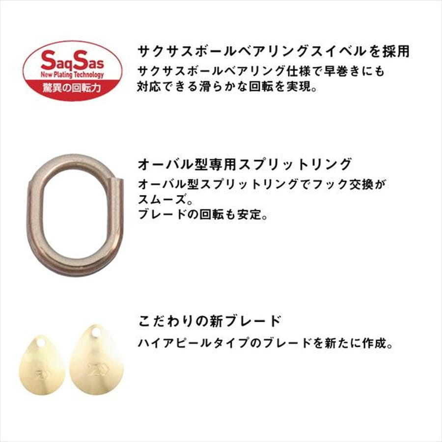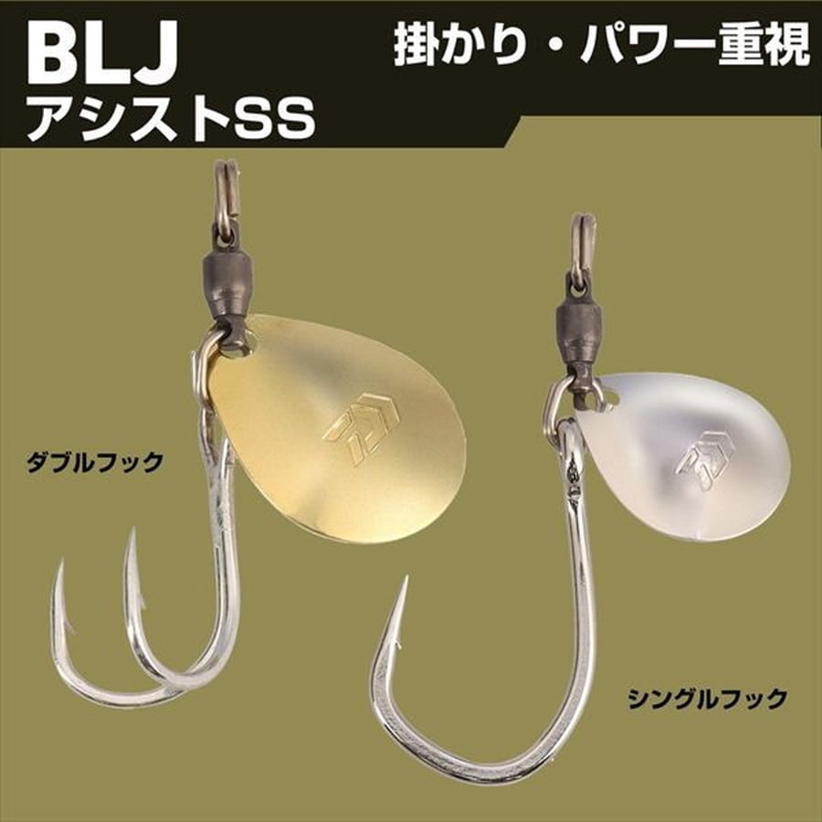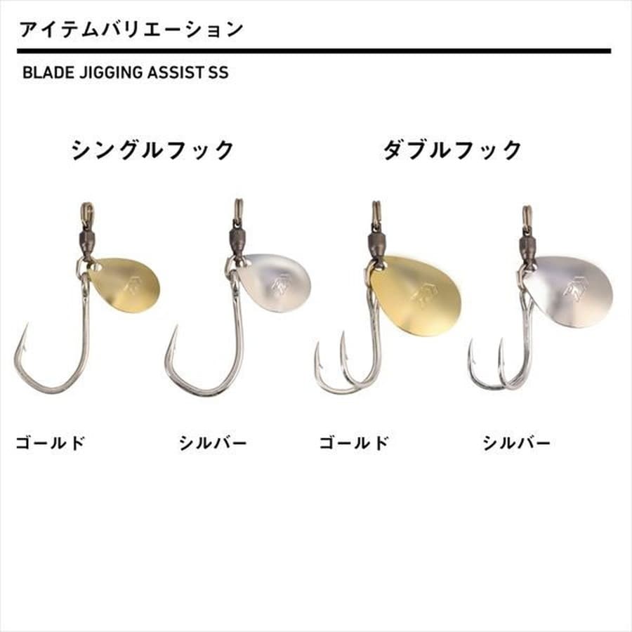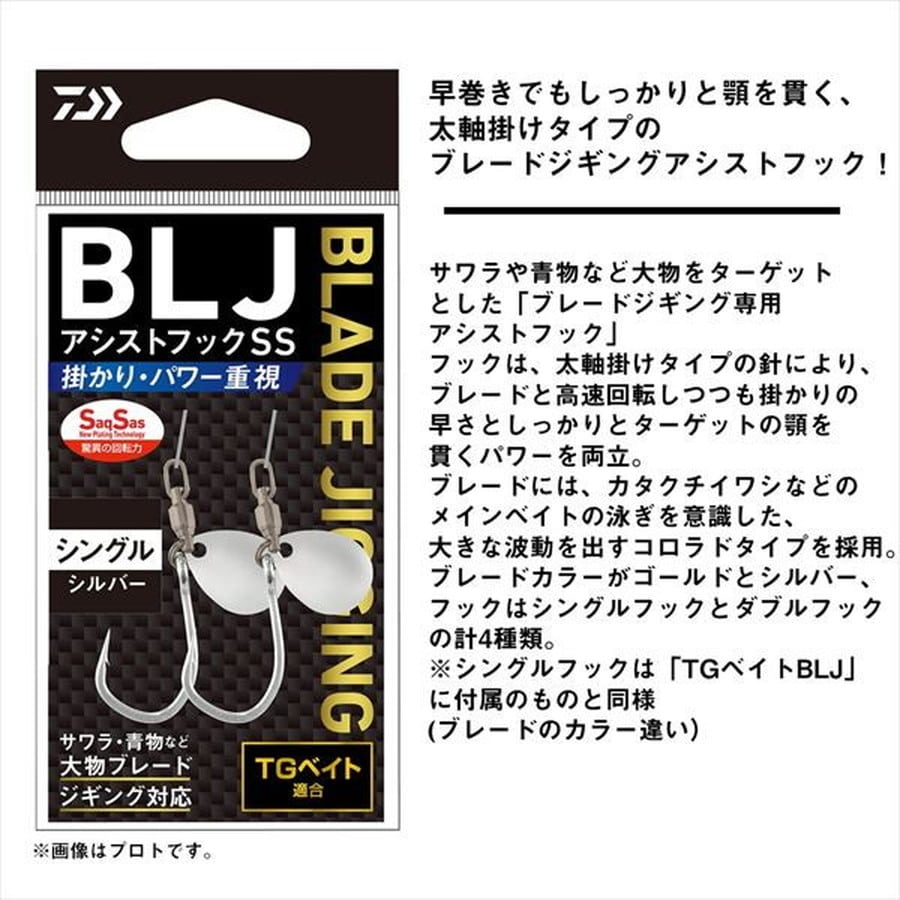 早巻きでもしっかりと顎を貫く、太軸掛けタイプのブレードジギングアシストフック!サワラや青物など大物をターゲットとした「ブレードジギング専用アシストフック」。フックは、太軸掛けタイプの針により、ブレードと高速回転しつつも掛かりの早さとしっかりとターゲットの顎を貫くパワーを両立。ブレードには、カタクチイワシなどのメインベイトの泳ぎを意識した、大きな波動を出すコロラドタイプを採用。ブレードカラーがゴールドとシルバー、フックはシングルフックとダブルフックの計4種類。※シングルフックは「TGベイトBLJ」に付属のものと同様(ブレードのカラー違い)