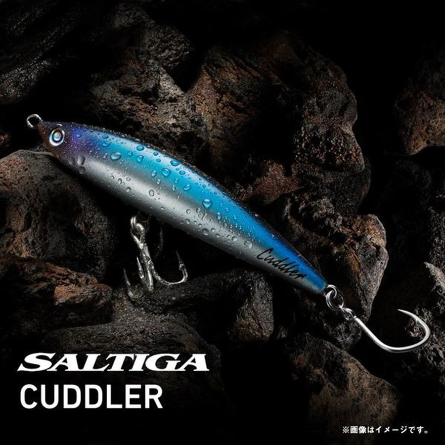 未知を求める全てのアングラーへ!瀬川良太監修モデル。ソルティガカドラーに求めたものは、飛距離とタフコンディションでもしっかり泳ぐスイムアクションである。テールを絞り込み、空気抵抗を大きく減らし、強い向かい風や横風でもバランスを崩さない安定した飛行姿勢を可能にするフォルムにより、飛距離での大きなアドバンテージを生み出した。また、背面カウンターウエイトを搭載し、浮き上がりの姿勢にこだわり、水面が荒れていても同じ姿勢で浮き上がるように調整し、水面のコンディションを問わない水中へのダイブを可能とした。追求したアクションは立体螺旋S字アクションで、ボディ全体がワイドに動き、広範囲から魚を引き寄せる。
