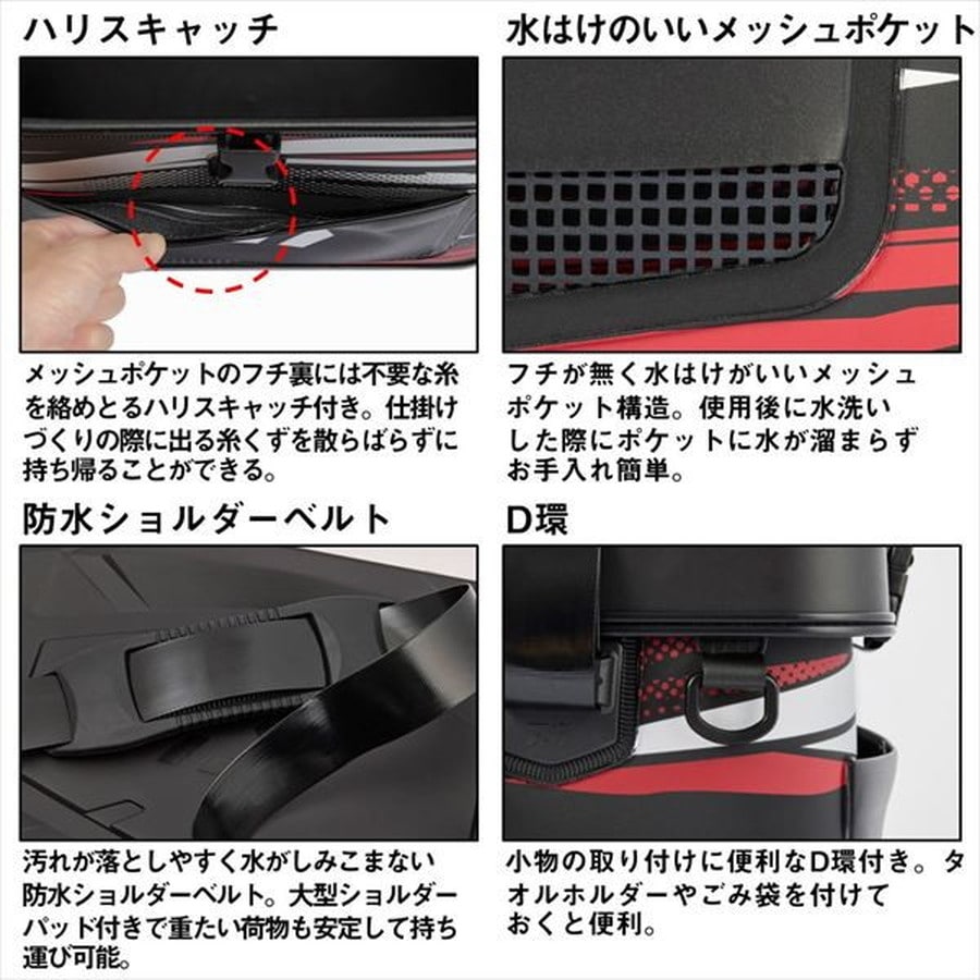 軽量!丸洗い可能!エサ釣り師に向けた新型フィールドバッグ!バッグが軽量なことで、荷物が多い釣りにおいて総重量を軽くすることができる。エサや汚れが付きやすいシチュエーションも多いので、丸洗いして清潔に保つことも可能。実釣に便利な、ロッドホルダーやポケット等を標準装備したおすすめ商品。