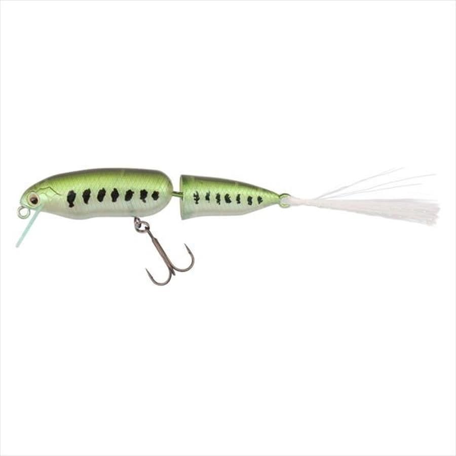 リアボディがポッパー!●唯一無二のジョイント構造が生み出す新感覚表層系ルアー!トーナメンターとしても活躍する宮嶋駿介監修の新感覚表層系ルアー。最も特徴的なのがリアボディをポッパー形状にしている点で、移動距離を抑えつつ強い水押しでアピールする。ポップ音やスプラッシュを出すことも可能で多彩なアプローチが可能となっている。ジョイント構造のボディは首振りアクションも得意で連続トゥイッチでは綺麗な180度ターンが可能。リアフックにはフェザーフックを採用し、ただ巻き時により艶めかしく動き、視覚的にもバスにアピールする。フロントフックアイはスイベル仕様。掛かった獲物は逃がさない。