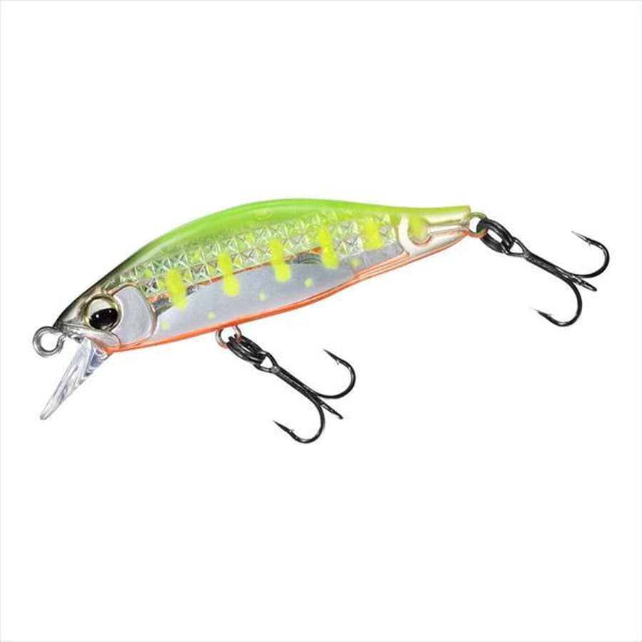 低重心で躍る、輝きで誘う。「シルバークリーク」シリーズ初のタングステンウエイト×レーザーインパクト搭載モデル。小渓流から開けた里川までをカバーする、渓流トラウトフィッシングの基軸となる50mmのシンキングミノー。体高のあるシルエットが特徴の「シルバークリークミノー50S」の形状をベースに、高比重タングステンウエイトをベリーに沿って4個配置。左右にパタパタと倒れこむヒラウチアクションを一層強化した。さらに、アクション時のフラッシングを最大化させるべく、側面には3列のレーザーインパクトを配列。光量が少ない山奥のような環境下でも確実に太陽光を捉えて反射する。岩陰や流れに潜む鱒へのアピール力を確保しているだけでなく、アングラーからは輝きでルアーを目視しながらのルアー操作が可能となる。