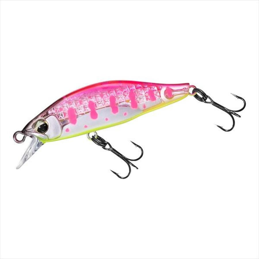 低重心で躍る、輝きで誘う。「シルバークリーク」シリーズ初のタングステンウエイト×レーザーインパクト搭載モデル。小渓流から開けた里川までをカバーする、渓流トラウトフィッシングの基軸となる50mmのシンキングミノー。体高のあるシルエットが特徴の「シルバークリークミノー50S」の形状をベースに、高比重タングステンウエイトをベリーに沿って4個配置。左右にパタパタと倒れこむヒラウチアクションを一層強化した。さらに、アクション時のフラッシングを最大化させるべく、側面には3列のレーザーインパクトを配列。光量が少ない山奥のような環境下でも確実に太陽光を捉えて反射する。岩陰や流れに潜む鱒へのアピール力を確保しているだけでなく、アングラーからは輝きでルアーを目視しながらのルアー操作が可能となる。