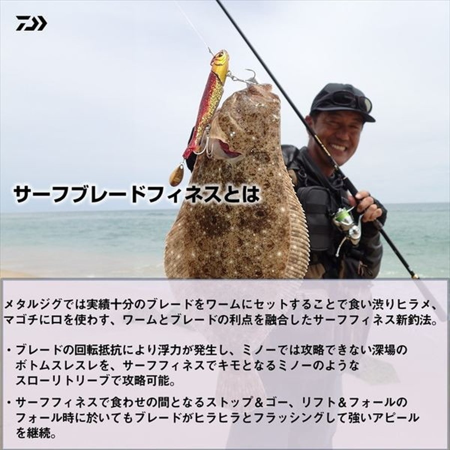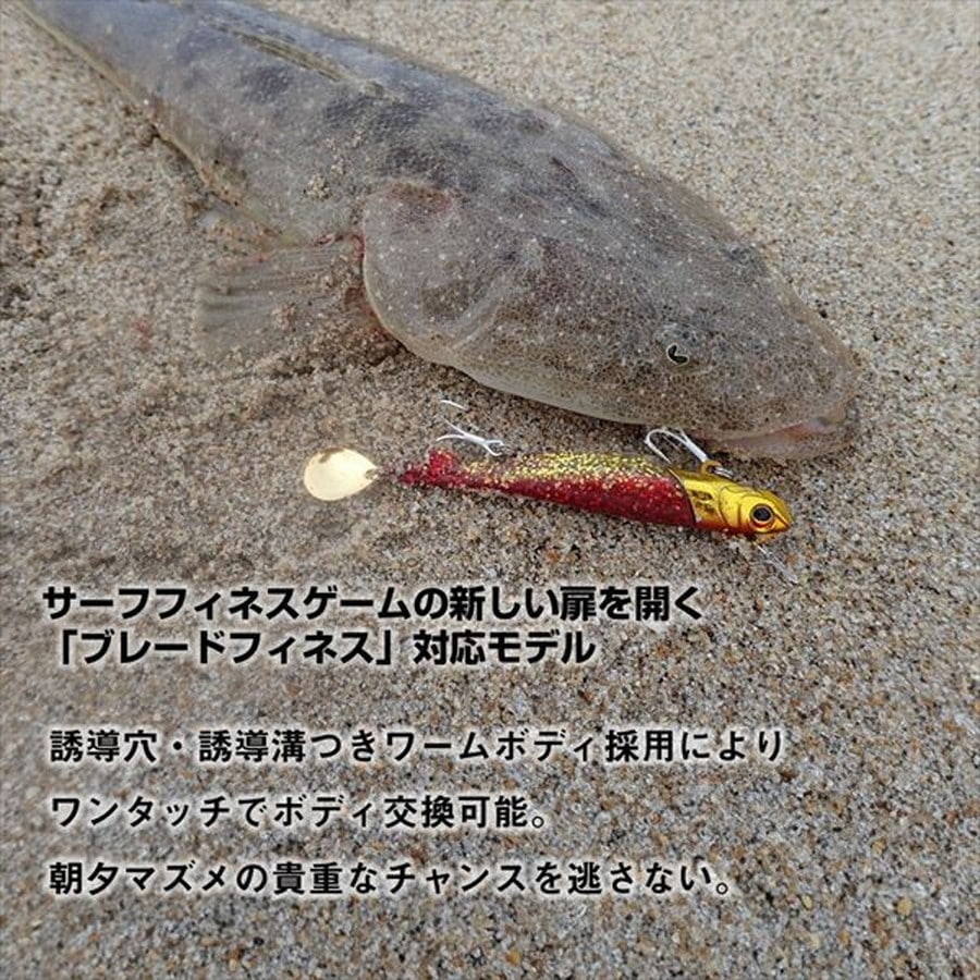 ヒラメ、マゴチを魅了するジグヘッド+ワームセット「RODEM」が、ブレード搭載&「R」の名を冠してブラッシュアップ!サーフフィネスゲームの新しい扉を開く「ブレードフィネス」対応モデル。誘導穴・誘導溝つきワームボディ採用によりワンタッチでボディ交換可能。リヤフックのボディ絡みを防止する、リヤフックホルダーを追加。