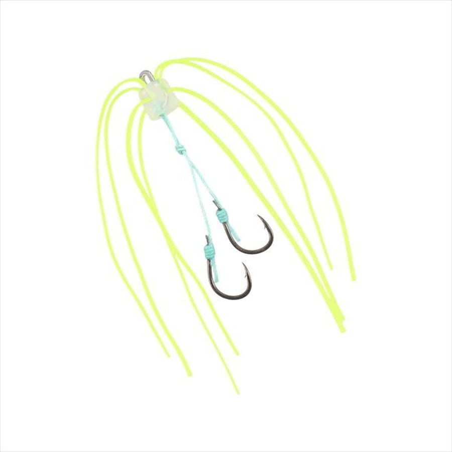 360°方向に広がるスカート。浮遊感+視覚アピール(スカートがふわりと踊る)。平田テスター監修。スカートの浮遊感と別売のワームをセットすることでタフコンディションで威力を発揮する、平田テスター渾身の切り札的ユニット。●βキャップ 本体に直接スカートが通った新ユニット。従来のセッティング方法(キャップにスカートを挟み込む)では出せなかった、スカートの浮遊感を演出。●βシステム 独自形状の金属リングとシリコンキャップにより、挟むだけでネクタイやスカートを留めることが可能。揺れる船上でも容易に交換が可能。●脅威の貫通力SaqSasフック搭載 ハリの表面にフッ素系特殊プレーティング加工を施すことで、刺さり性能は従来の塗装ハリに比べて最大40%(平均約20%)アップ。●フック仕様 紅牙替えフックβ SS 中井段差SSS純正。●別売のワーム(紅牙 フレアリーフ)等を合わせることで、タフコンディションに対応する切り札となる。