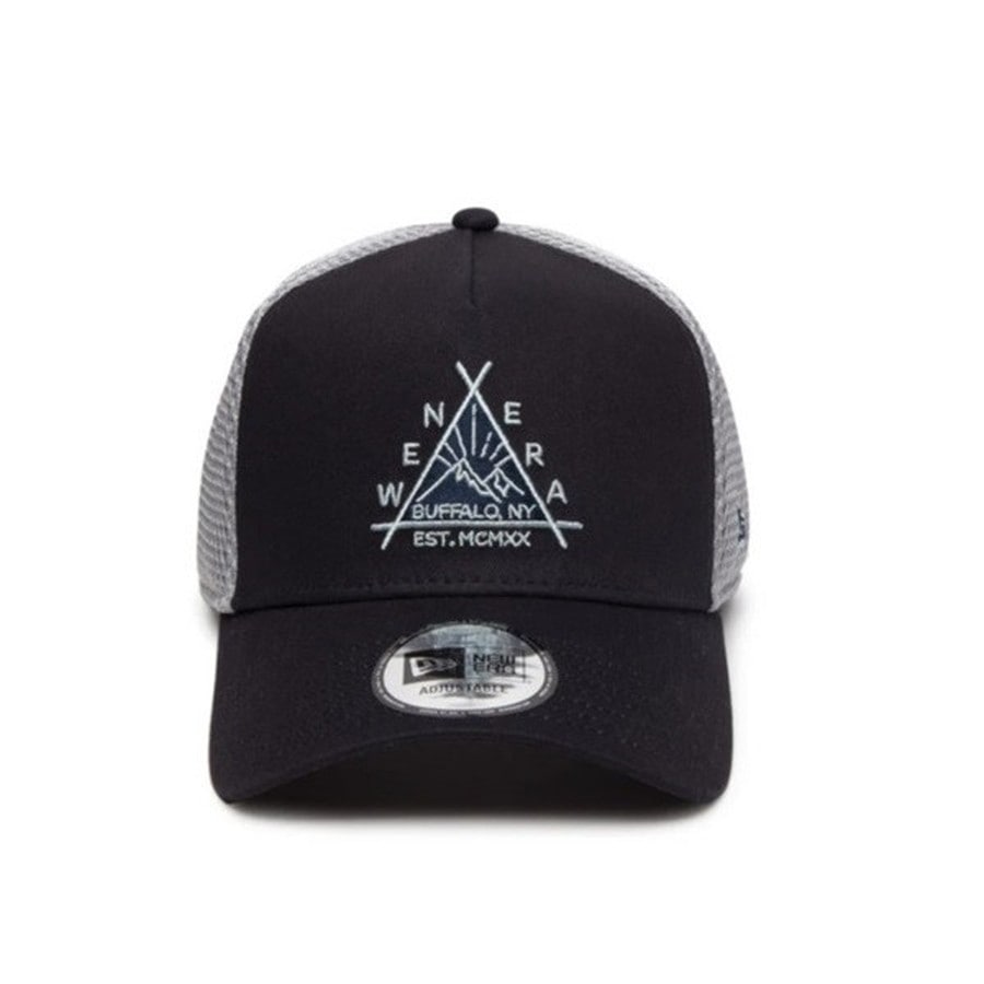 ・山並みから上る太陽をモチーフにしたオリジナルロゴデザイン。・サイドとリアに、通気性が高く、柔らかな被り心地のスペーサーメッシュを採用。・手洗いが可能。※スウェットバンドには抗菌効果のあるMICROERAを採用。 ※トップボタンは錆をさけるプラスチック製。シルエットは9FORTYをベースに、フロント部1枚パネルにして上部をつまんだ独特のシルエットが特徴の9FORTY A-Frame。フロントパネルの内側に独自の芯を作ることで型崩れしにくいシルエットが保たれます。少し深みがある被り心地です。バイザー(つば)はあらかじめ着用しやすい状態にカーブしています。リアのアジャスターで頭回り約56.8cmから60.6cmまでサイズ調整が可能です。
