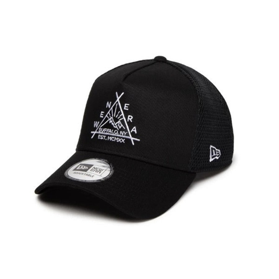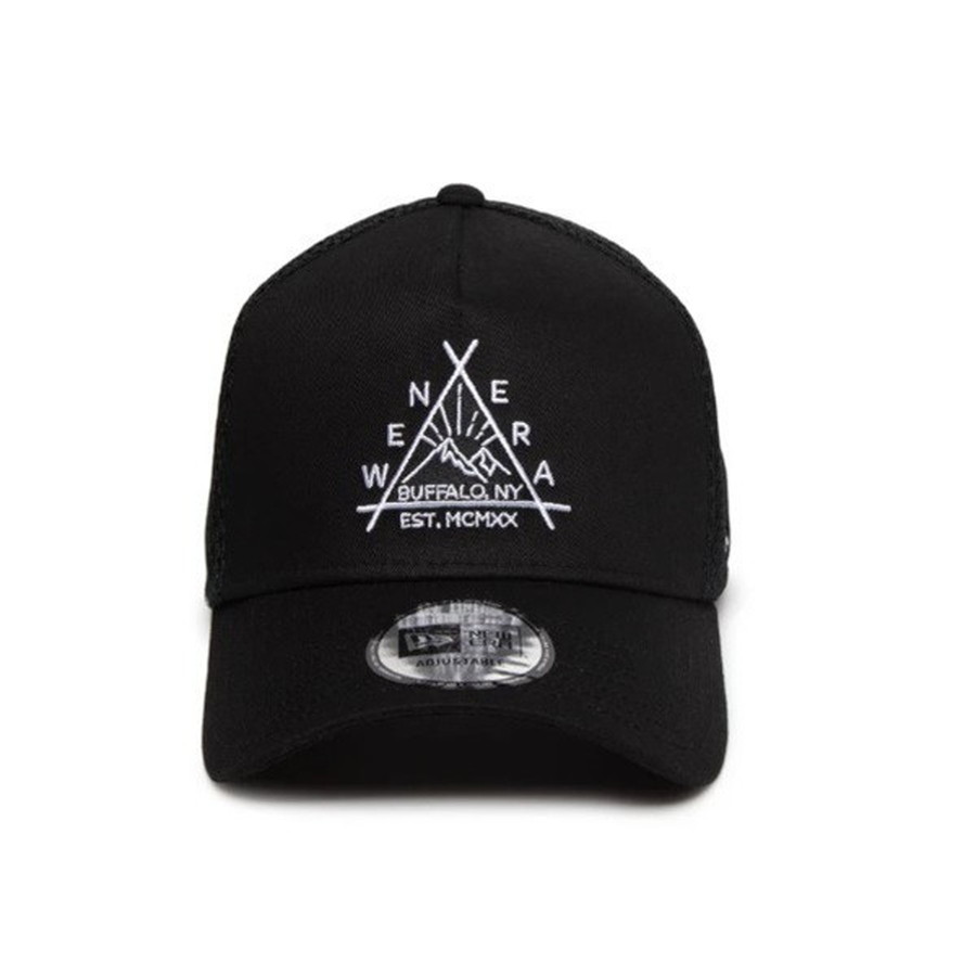 ・山並みから上る太陽をモチーフにしたオリジナルロゴデザイン。・サイドとリアに、通気性が高く、柔らかな被り心地のスペーサーメッシュを採用。・手洗いが可能。※スウェットバンドには抗菌効果のあるMICROERAを採用。 ※トップボタンは錆をさけるプラスチック製。シルエットは9FORTYをベースに、フロント部1枚パネルにして上部をつまんだ独特のシルエットが特徴の9FORTY A-Frame。フロントパネルの内側に独自の芯を作ることで型崩れしにくいシルエットが保たれます。少し深みがある被り心地です。バイザー(つば)はあらかじめ着用しやすい状態にカーブしています。リアのアジャスターで頭回り約56.8cmから60.6cmまでサイズ調整が可能です。