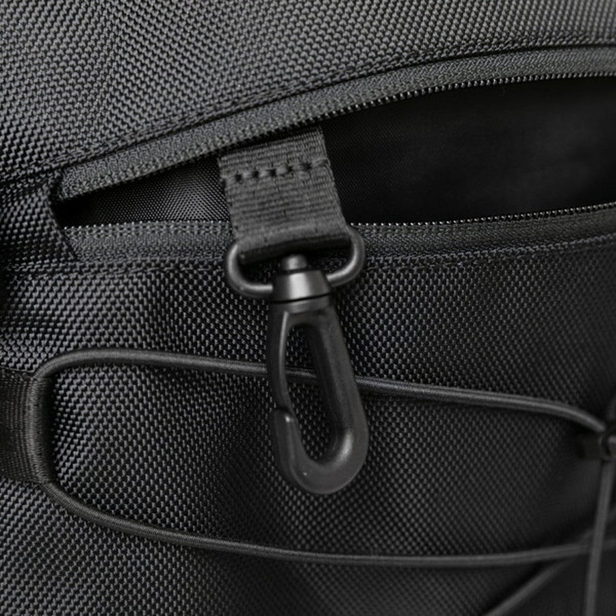 荷物をホールドすることができる外側のバンジーコードが特徴のバックパック。出し入れが容易なシンプルなメインコンパートメント構造。・内部には文房具や小物を細かく整理できる小型サイズポケットを配備・外側のポケット内にはインナーフックを配備・ラップトップPCを保護する収納ポケット・ドリンクなどの携帯に便利なサイドポケット