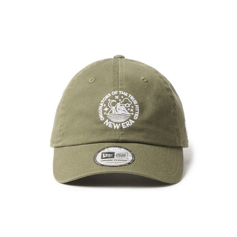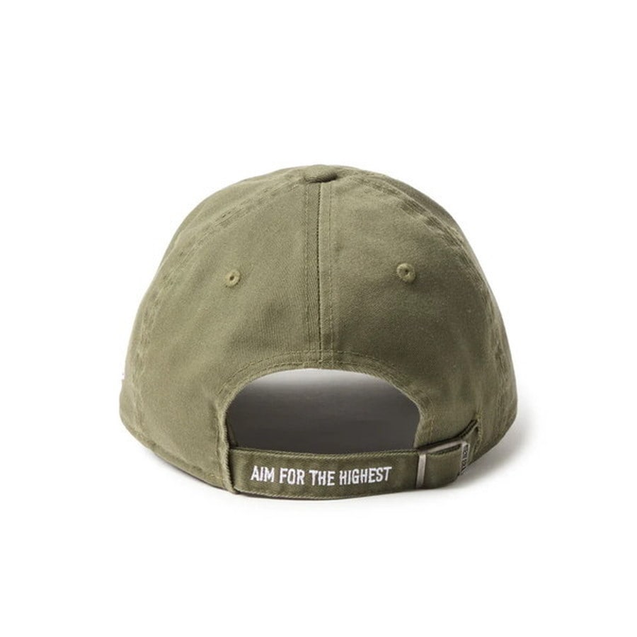 アウトドアモチーフのオリジナルロゴデザインをレイアウト。リアストラップにはAIM FOR THE HIGHESTの刺繍入り。トップボタンは濡れた際の錆をさけるプラスチック製。シルエットはフロント部分に芯がなく柔らかな被り心地が特徴。フロントパネルのトップステッチをなくし、スウェットバンドには薄く柔らかいコットンツイルを採用。バイザー(つば)はあらかじめ着用しやすい状態にカーブしています。イージースナップ(スナップボタンで着脱できるサイズ調整するストラップ)なので、バッグやベルトループなどに簡単に取り付けることができます。頭回り約55.8cmから59.6cmまでサイズ調整が可能です。