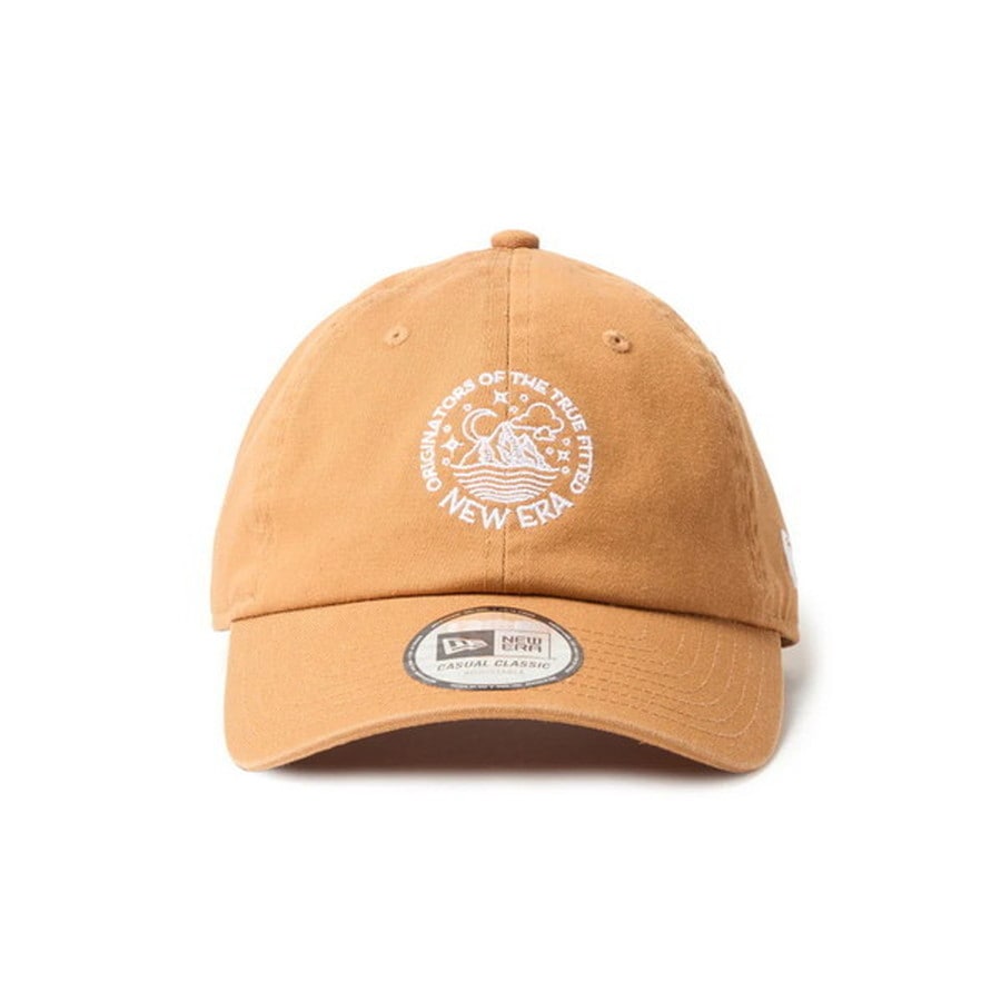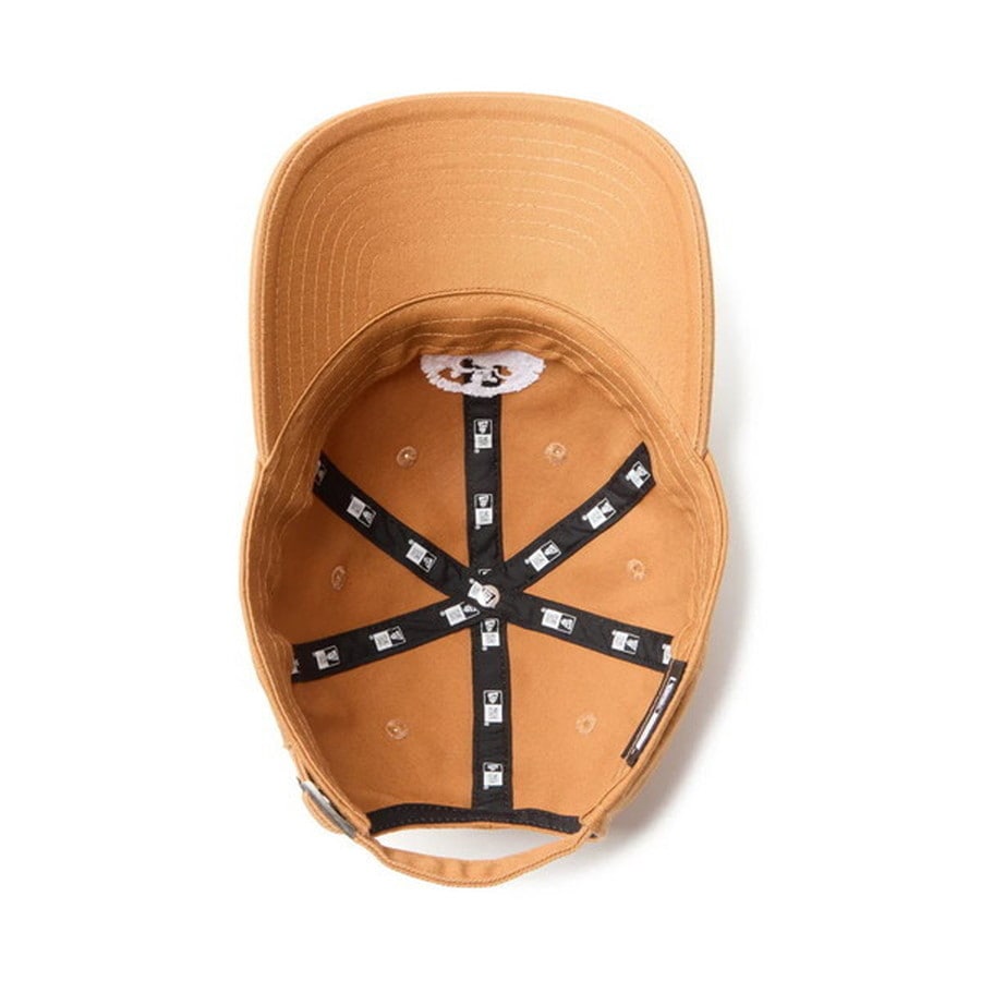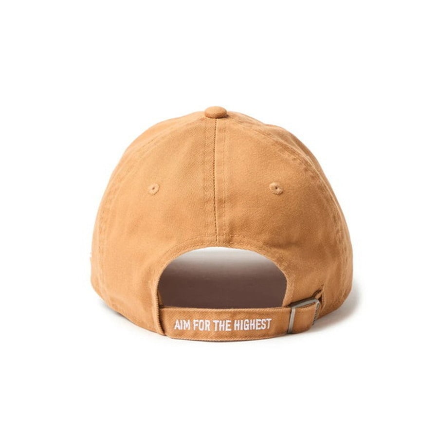 アウトドアモチーフのオリジナルロゴデザインをレイアウト。リアストラップにはAIM FOR THE HIGHESTの刺繍入り。トップボタンは濡れた際の錆をさけるプラスチック製。シルエットはフロント部分に芯がなく柔らかな被り心地が特徴。フロントパネルのトップステッチをなくし、スウェットバンドには薄く柔らかいコットンツイルを採用。バイザー(つば)はあらかじめ着用しやすい状態にカーブしています。イージースナップ(スナップボタンで着脱できるサイズ調整するストラップ)なので、バッグやベルトループなどに簡単に取り付けることができます。頭回り約55.8cmから59.6cmまでサイズ調整が可能です。