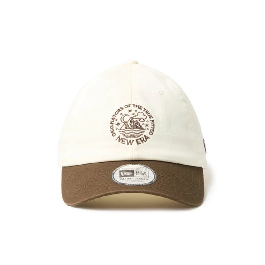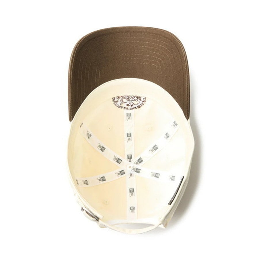アウトドアモチーフのオリジナルロゴデザインをレイアウト。リアストラップにはAIM FOR THE HIGHESTの刺繍入り。トップボタンは濡れた際の錆をさけるプラスチック製。シルエットはフロント部分に芯がなく柔らかな被り心地が特徴。フロントパネルのトップステッチをなくし、スウェットバンドには薄く柔らかいコットンツイルを採用。バイザー(つば)はあらかじめ着用しやすい状態にカーブしています。イージースナップ(スナップボタンで着脱できるサイズ調整するストラップ)なので、バッグやベルトループなどに簡単に取り付けることができます。頭回り約55.8cmから59.6cmまでサイズ調整が可能です。