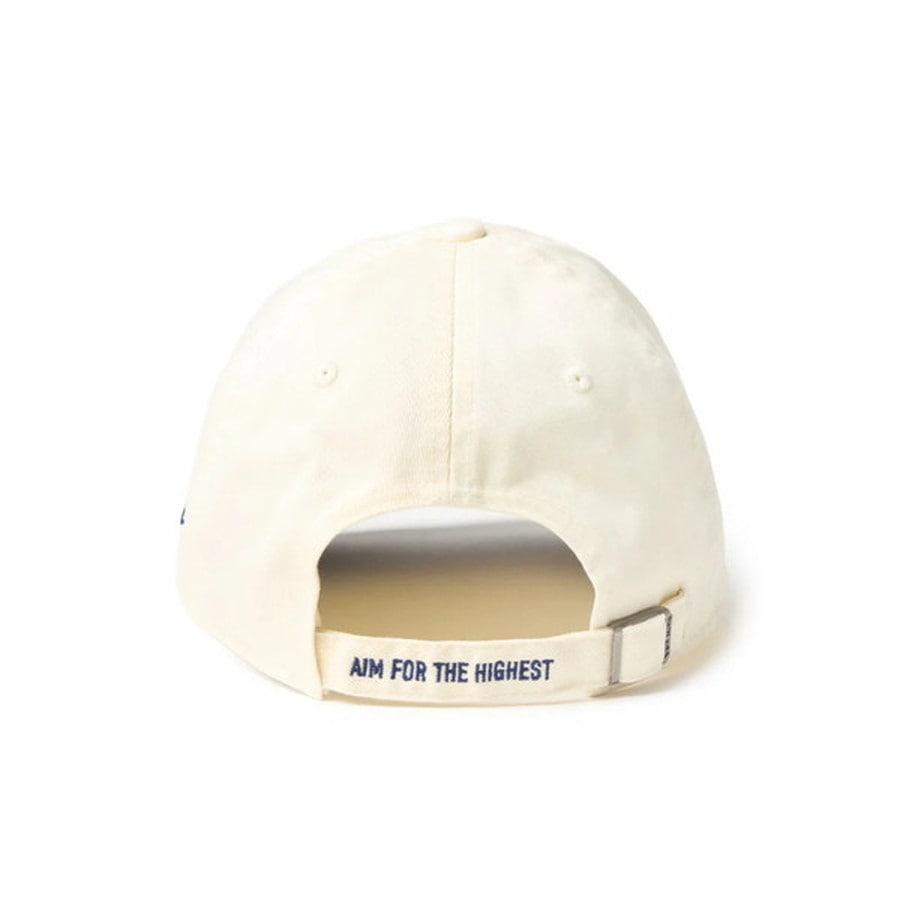 アウトドアモチーフのオリジナルロゴデザインをレイアウト。リアストラップにはAIM FOR THE HIGHESTの刺繍入り。トップボタンは濡れた際の錆をさけるプラスチック製。シルエットはフロント部分に芯がなく柔らかな被り心地が特徴。フロントパネルのトップステッチをなくし、スウェットバンドには薄く柔らかいコットンツイルを採用。バイザー(つば)はあらかじめ着用しやすい状態にカーブしています。イージースナップ(スナップボタンで着脱できるサイズ調整するストラップ)なので、バッグやベルトループなどに簡単に取り付けることができます。頭回り約55.8cmから59.6cmまでサイズ調整が可能です。