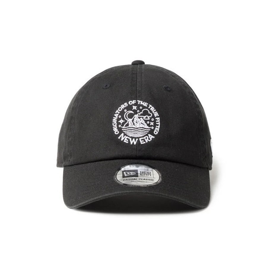 アウトドアモチーフのオリジナルロゴデザインをレイアウト。リアストラップにはAIM FOR THE HIGHESTの刺繍入り。トップボタンは濡れた際の錆をさけるプラスチック製。シルエットはフロント部分に芯がなく柔らかな被り心地が特徴。フロントパネルのトップステッチをなくし、スウェットバンドには薄く柔らかいコットンツイルを採用。バイザー(つば)はあらかじめ着用しやすい状態にカーブしています。イージースナップ(スナップボタンで着脱できるサイズ調整するストラップ)なので、バッグやベルトループなどに簡単に取り付けることができます。頭回り約55.8cmから59.6cmまでサイズ調整が可能です。