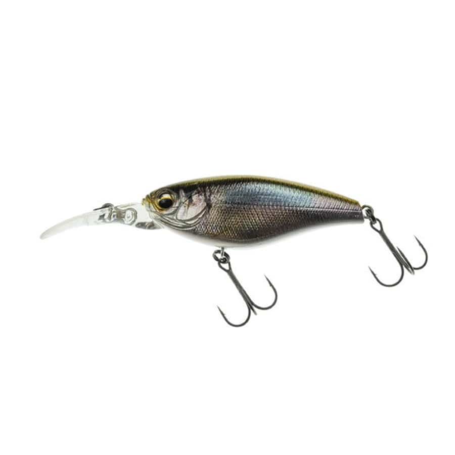 潜行深度最大1~1.5m。アクションはイマカツ独自のワインドビルを装備し、潜る力を左右の動きに変換、柔らかく強い波動を発生する集魚力優先タイプ。比較的ロングリップながら深く潜らず、障害物の回避性能もショートビルを遥かに超えており従来のシャッドでは攻略が難しかったゴロタエリアなどでもシャロークランクと同じように攻めることが出来ます。またウィードエリアでの釣りにも向いており、使い方としては時折ウィードに引っ掛けてポーズを取り、そして外すの繰返しです。ウィードを外した瞬間のリアクションでバスがバイトします。そしてこの時、アベレージが小さいフィールドやプレッシャーなどでクランクではショートバイトで終わってしまうバスもシャッドであればシャープなボディがフックポイントを隠すことなくフックアップに持ち込むことが出来ます。ワインドリップ装着ながら、優れたエアロダイナミクスを計算されており、その距離はまさにカッ飛びシャッドの名に相応しいものです。★全長:60mm