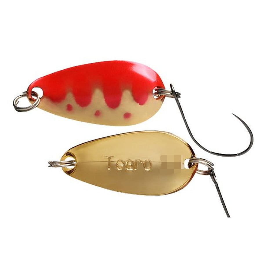 全てのスプーニングの軸となるベイシカルスプーン。ティアロはスローからファーストまで幅の広いリトリーブキャパシティーを持ったベーシカルスプーンです。 水の掴みが良いオーソドックスなティアドロップ型の形状と、度重なるテストにより決定した微妙なノーズやカップのベンド角度により、大きなウォブリングで時より発生するイレギュラーアクションで食わせのきっかけを生みつつもきっちり泳ぎ続けさせることが可能になりました。 泳ぎ出しも抜群なので、着水直後や着底からの巻き始めバイトを逃しません。0.7g~3.1gのサイズバリエーションにより、トップからボトムまで幅広いレンジをカバーします。■杉山代悟フィールドスタッフ厳選カラーマッディウォーター専用のカラーです。両サイドの蛍光レモンと畜光のプツプツを入れることにより視界の悪いマッディーウォーターでもしっかりアピールします。ダイゴマイトは2はクリアーウォーター、新色はマッディーウォーター専用でご使用下さい。 ■黒野浩二フィールドスタッフ厳選カラー激しぶり時に威力を発揮するダークオリーブ。黒野氏(ショボクレシリーズ)の厳選カラーです。 ■遠藤肇フィールドスタッフ厳選カラーマッディー、クリア問わず、放流のセカンドサードで長く使えるカラーです。 ■井上悟フィールドスタッフ厳選カラーメインは茶色系の濁りのエリアですが、クリアウォーターでは放流セカンドからサードでまだ残したいとき。マッディーウォーターでは短い距離で食わせることを意識したい時に使用します。 ■磯部貴博フィールドスタッフ厳選カラー食いが渋った時に、一匹をとりたいというときに是非とも使用していただきたいカラーです。また、近年増えてきたプールエリアでもオススメです。 ■針谷方子フィールドスタッフ厳選カラー(マサのドクリンゴ) ちびクワトロスプーンでの実績カラー。朝一のパイロット的に使うのも良し。クリアーでも効果のあるカラーマッディー、クリアー問わず、活躍するカラーです。 ■黒野浩二フィールドスタッフ厳選カラー(クログロー) クリアー マッディーウォーターともに、セカンドからサードで効くカラーです。ナイターでも威力を発揮します。 ■杉山代悟フィールドスタッフ厳選カラー(よもぎ) マッディーウォーターでは、とにかく強いカラーです。東山湖でのウイニングカラーでもあります。(かれは) 大会などで一匹を絞りだす為のカラーです。出す手がなくなった時のオススメカラーです。 ■井上悟フィールドスタッフ厳選カラー(ちゃまめ) クリアーウォーターの放流セカンドからサードの少しカラーに悩むような時。マッディーウォーターでは先発のサーチベイト的な役から渋い時の、あと一匹ほしい時まで対応します。 ■遠藤肇フィールドスタッフ厳選カラー(エンドブラスター) クリアー マディウォーターともにペレットを撒いているエリアに効くカラー。また、ペレットを撒いていないエリアの激渋にも効きます。 ■ティモン人気定番カラー(コウキブラウン) クリアー マッディーウォーターともオールラウンダーで使用できるカラーです。クワトロスプーン ちびクワトロスプーンでも人気定番カラーです。