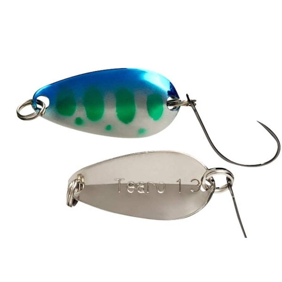 スローからファーストまで幅広いリトリーブキャパシティーを持ったベーシックスプーン『Tearo/ティアロ』。水掴みが良いティアドロップ型の形状と、微妙なノーズやカップのベンド角度により、大きなウォブリングでアピールします。★重量(g):1.6