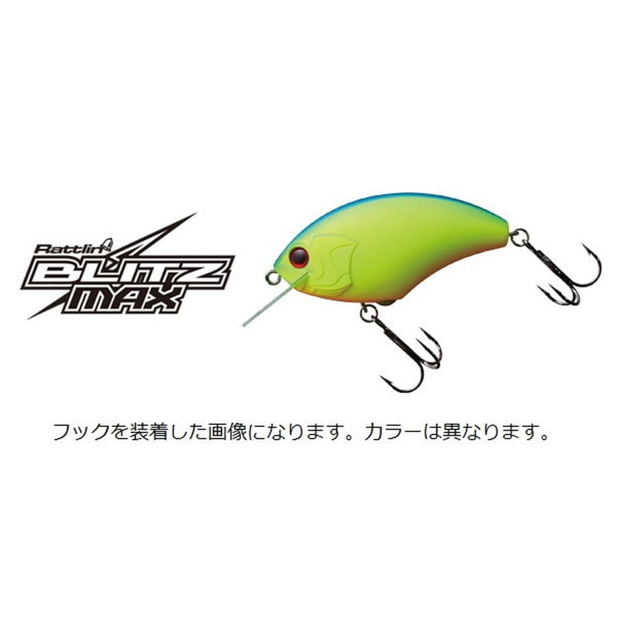 ラトリンブリッツ(53mm)のコンセプトとは一線を画すのがこのRattlin Blitz Max。一般的にタフなフィールドほどサイレントが有利と言えるが、バスのサイズやタイミングによって逆もありうる。濁りの影響や荒天で活性が上がった時などはラトリンの出番だが、さらにビッグバスに効果的なのが威嚇やリアクション要素で口を使わせる方法。今回ボディには独自調合したボーン樹脂を選択し、搭載するラトルボールはスチールΦ7.15mm(約1.5g)という超大型。ボディ内を自由に暴れ回り左右の壁に強くヒットするだけでなく途中の転がり音もビッグバスを強烈に刺激する。またキャスト時にはテールまで移動することで飛距離が大幅にアップ。ボディ素材が高浮力であることからハイフロートをキープし、アクションレスポンスも維持した。こうしてRattlin Blitz Maxはラトルというよりもノイズでビッグバスに対してイラつかせ怒らせて口を使わせるインパクトのあるノイジークランクである。★全長:62mm