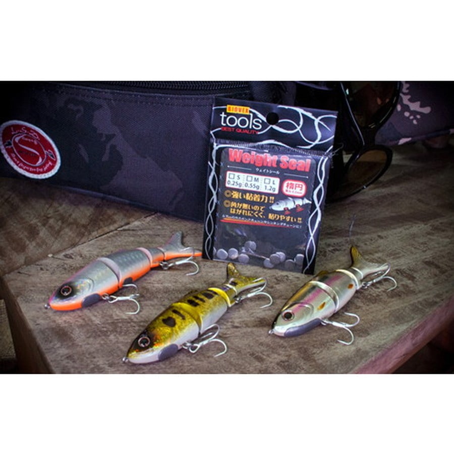 厚み:0.5mm Length:24×8.3mm Weight:1.2g Qty.:5pcs/pack★ルアーのサスペンドチューンやシンキングチューンに! Joint Bait 110、Joint Bait 90のウェイトチューンに便利です。 ■日本製なので強い粘着力。 ■角が無いので、剥がれにくく貼りやすい。 □ルアーのサスペンドチューンやシンキングチューン、バランス調整に最適な協力粘着テープ付板鉛です。 □曲面に貼る場合は鉛を曲げながら、局面に沿ってしっかりと押さえつけて下さい。 □貼る場所により動きに変化をつけることも可能です。 □ルアーの形状に合わせてハサミでカットできます。 □表示している重
