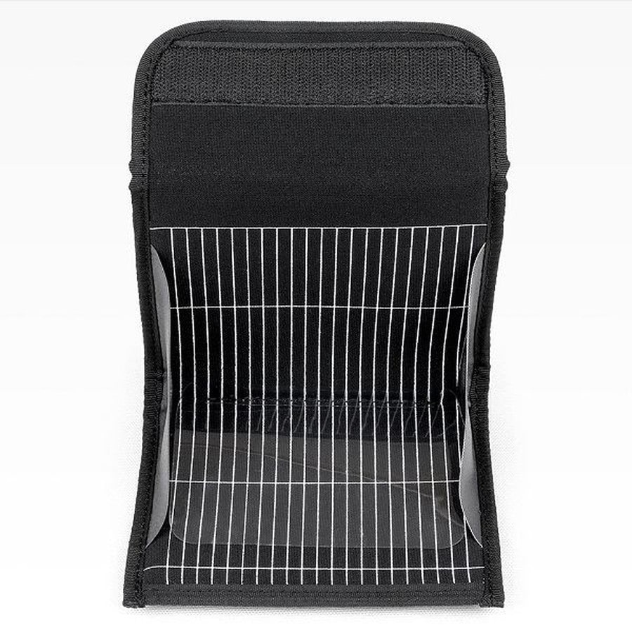 エリアトラウトフィッシングで使用するバーブレスフック対応のマルチルアーポーチです。今までに無いスピーディーなルアーチェンジを可能にする、面ファスナーフラップ開閉式を採用しています。左右にある扇状のマチは、ルアーが取りやすい適度な開口角度に設定されています。また、このマチがルアーの脱落を防止します。インナー素材は、針の抜き差しを繰り返しても針跡が残りづらく、刺したフックをしっかり保持できるポリウレタン発砲フォームを採用しています。収納面には、ルアーを整理しやすいガイドラインがプリントされていますので、ルアーのサイズにより2段に分けて収納する際も便利です。イメージ画像の使用例ではプラグがメインですが、スプーンなどの収納にも適しています。背面には、バッグ、ストラップ、バッカンなどに取り付け可能なアタッチメントテープと、カラビナなどで吊り下げができるテープループ(12㎜テープ)が付いています。★サイズ:W:約12cm×H:約10cm×D:約3cm 背面アタッチメントテープ幅:約20mm 重量:約60g 素材:表 地:8号ハンプ/内 装:ポリウレタン発泡フォーム/クリアビニール:PVC カラー:FGS(ブロックスキン)