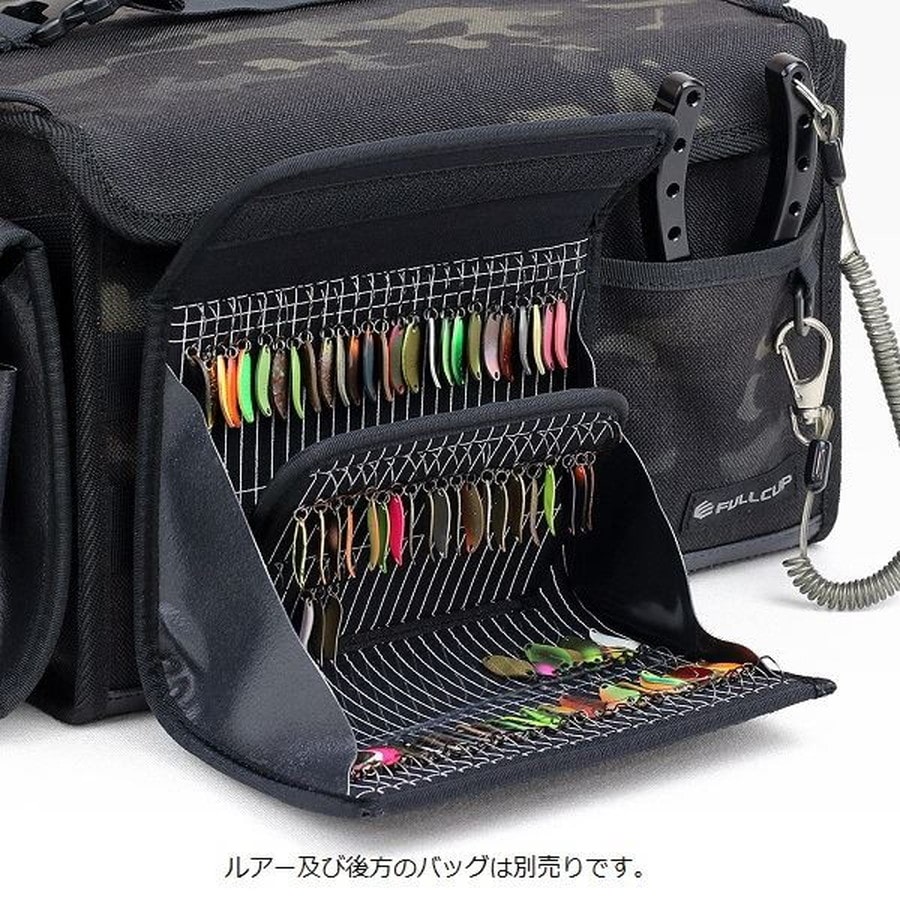 スピーディーにルアーチェンジできる、フラップ開閉式マルチルアーポーチ。FAST FLIP 15S(ファーストフリップ15S)は、エリアトラウトフィッシングで使用するバーブレスフック対応のマルチルアーポーチです。今までに無いスピーディーなルアーチェンジを可能にする、面ファスナーフラップ開閉式を採用しています。左右にある扇状のマチは、ルアーが取りやすい適度な開口角度に設定されています。また、このマチがルアーの脱落を防止します。インナー素材は、針の抜き差しを繰り返しても針跡が残りづらく、刺したフックをしっかり保持できるポリウレタン発砲フォームを採用しています。収納面には、ルアーを整理しやすいガイドラインがプリントされていますので、ルアーのサイズにより2段に分けて収納する際も便利です。イメージ画像の使用例ではスプーンがメインですが、プラグなどの収納にも適しています。背面には、バッグ、ストラップ、バッカンなどに取り付け可能なアタッチメントテープと、カラビナなどで吊り下げができるテープループ(12㎜テープ)が付いています。★【本体サイズ】W:約15cm × H:約11cm × D:約3cm 背面アタッチメントテープ幅:約20mm【重量】本体:約96g