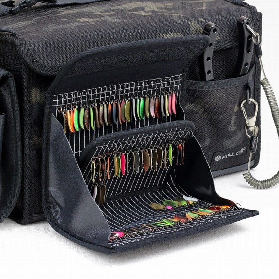 エリアトラウトフィッシングで使用するバーブレスフック対応のマルチルアーポーチです。今までに無いスピーディーなルアーチェンジを可能にする、面ファスナーフラップ開閉式を採用しています。左右にある扇状のマチは、ルアーが取りやすい適度な開口角度に設定されています。また、このマチがルアーの脱落を防止します。インナー素材は、針の抜き差しを繰り返しても針跡が残りづらく、刺したフックをしっかり保持できるポリウレタン発砲フォームを採用しています。収納面には、ルアーを整理しやすいガイドラインがプリントされていますので、ルアーのサイズにより2段に分けて収納する際も便利です。イメージ画像の使用例ではプラグがメインですが、スプーンなどの収納にも適しています。背面には、バッグ、ストラップ、バッカンなどに取り付け可能なアタッチメントテープと、カラビナなどで吊り下げができるテープループ(12㎜テープ)が付いています。★W:約15cm × H:約11cm × D:約3cm 背面アタッチメントテープ幅:約20mm