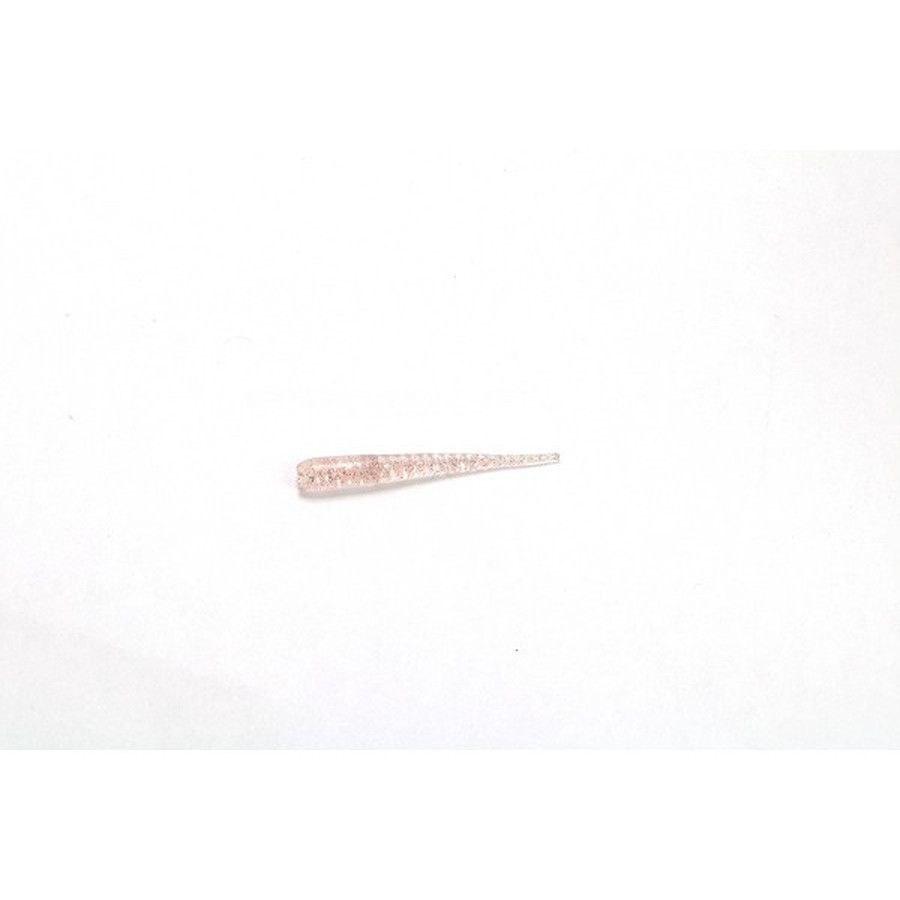 (更にマッチ ザ ベイトへ)アジ メバルが、アミや極小の小魚をベイトにしている時にベストマッチ。ただ単にダウンサイズ化するだけでは意味がありません。魚をスレさせない微波動を生む、ノコギリ刃の様なギザギザの三角リブもジュニア1.3インチ専用に角度を変えました。また、ワームがショート化する事でワームのボディに張りが出て動きが変わるのを、片面だったスリット(溝)を両面に入れる事で、柔らかさと動きを調整することに成功しました。
