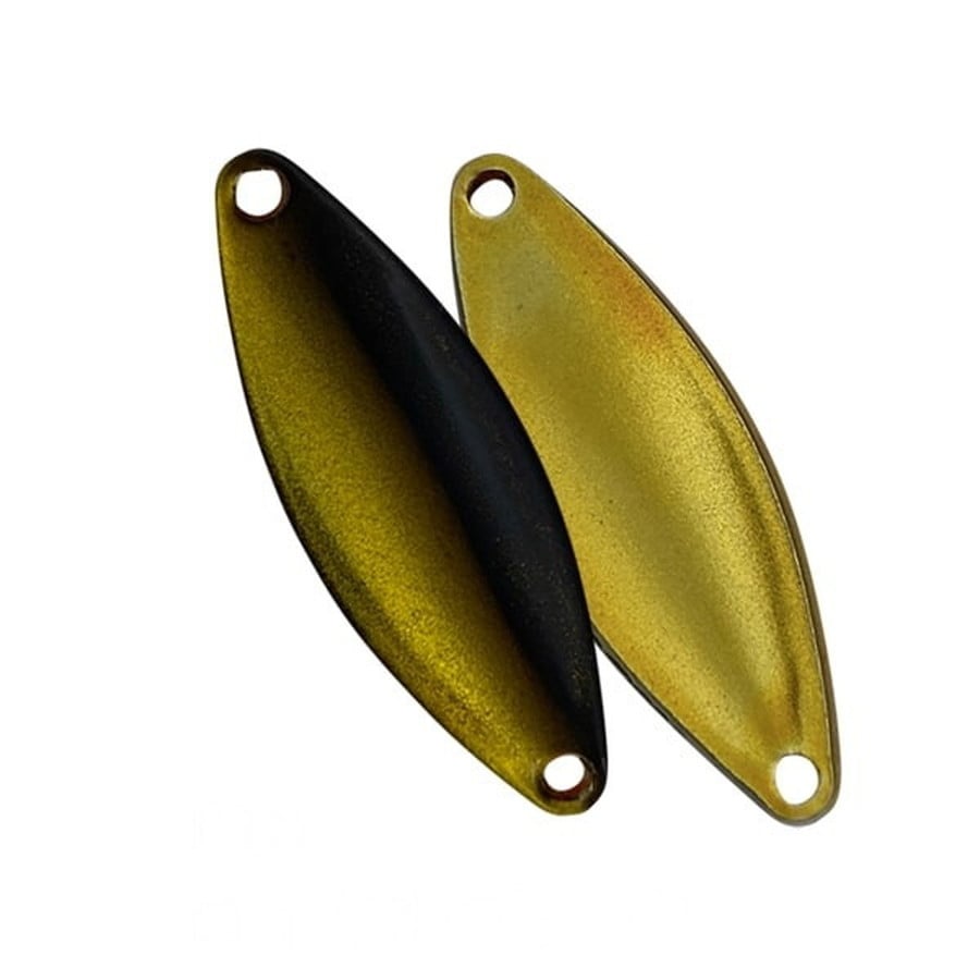 ポルコ最大の強みは、魚を飽きさせない異なる3つのアクションをスムーズに変化させられる点にある。基本アクションはウォブンロールだが、リトリーブ速度を落としていくと途切れることなく自然なローリングアクションへとスイッチする。またロッド角度を上げることでスタンドアップ(立ち泳ぎ)ロールアクションを演出することができる。このスタンドアップロールアクションを軸に戦略を立てれば、魚の目線から見たスプーンのシルエットに変化を与えられ、さらにはロッドを上下させる操作をプラスすればバーティカルな誘いを仕掛けることが可能となる。これにより、たとえ相手が喰い渋るトラウトであっても目先でアクションとシルエットに連続した変化を与えることでルアーとの距離を詰めさせ口を使わせるメソッドが成立する。警戒心を与えにくい洗練された細身のフォルムは、空気抵抗を軽減させた抜群の飛距離・浮き上がりを抑えた安定したレンジキープ力・フッキング時にはスプーンの暴れを抑制し、フッキングミスを軽減するなど計算された設計となっている。★重量(g):1.2