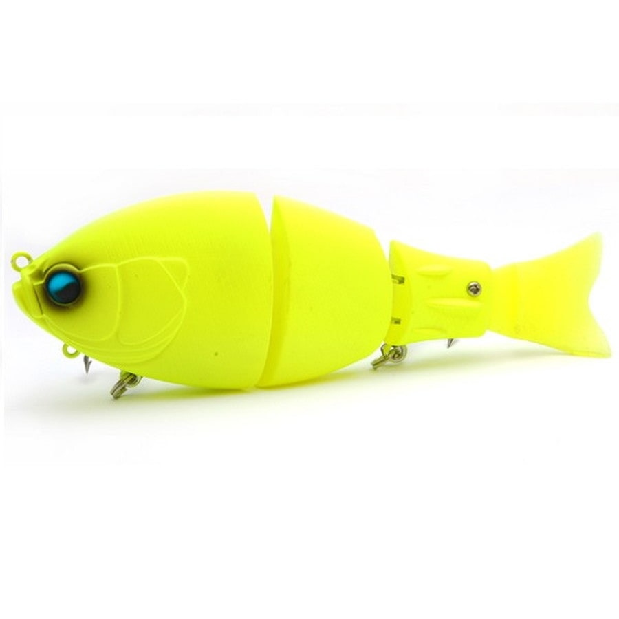 G-DASHはその名のごとく水面直下を疾走するコンパクトジョイントベイト。テール部ボディサイドに設置したトライフィン(3連フィン)は、水への喰い付きを高めるために、サーフボードや遊泳力に優れた魚類(カジキ、マグロ、サメなど)から着想を得たG-DASH独自の構造。ブルーギル型縦扁平ボディがバイブレーションプラグのように左右に倒れ込もうとする力を抑制し、全速度域においてスイミング姿勢をビタッと安定させる革新的な構造です。また、G-DASH特有のブルーギル酷似ムーブ「リトリーブを止めた際の急停止」も、トライフィンがもたらす水噛みによって実現した特殊エレメントです。★Length: 130.0mm Lure Wt.: 1-1/8oz. class.