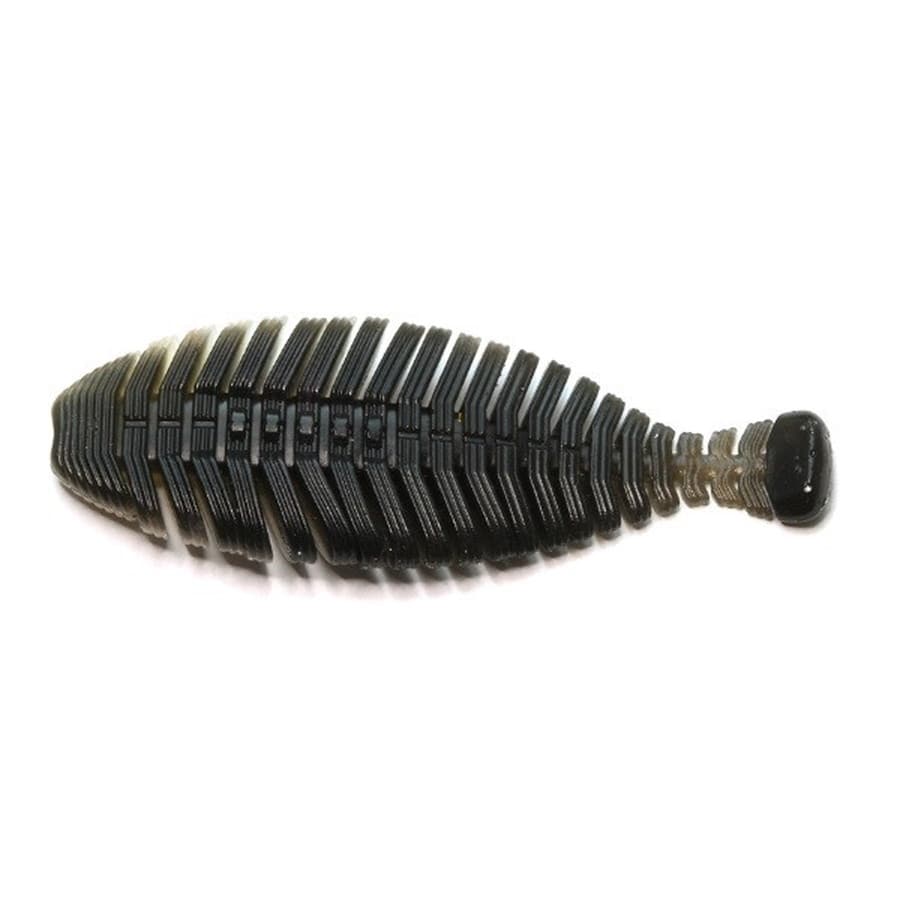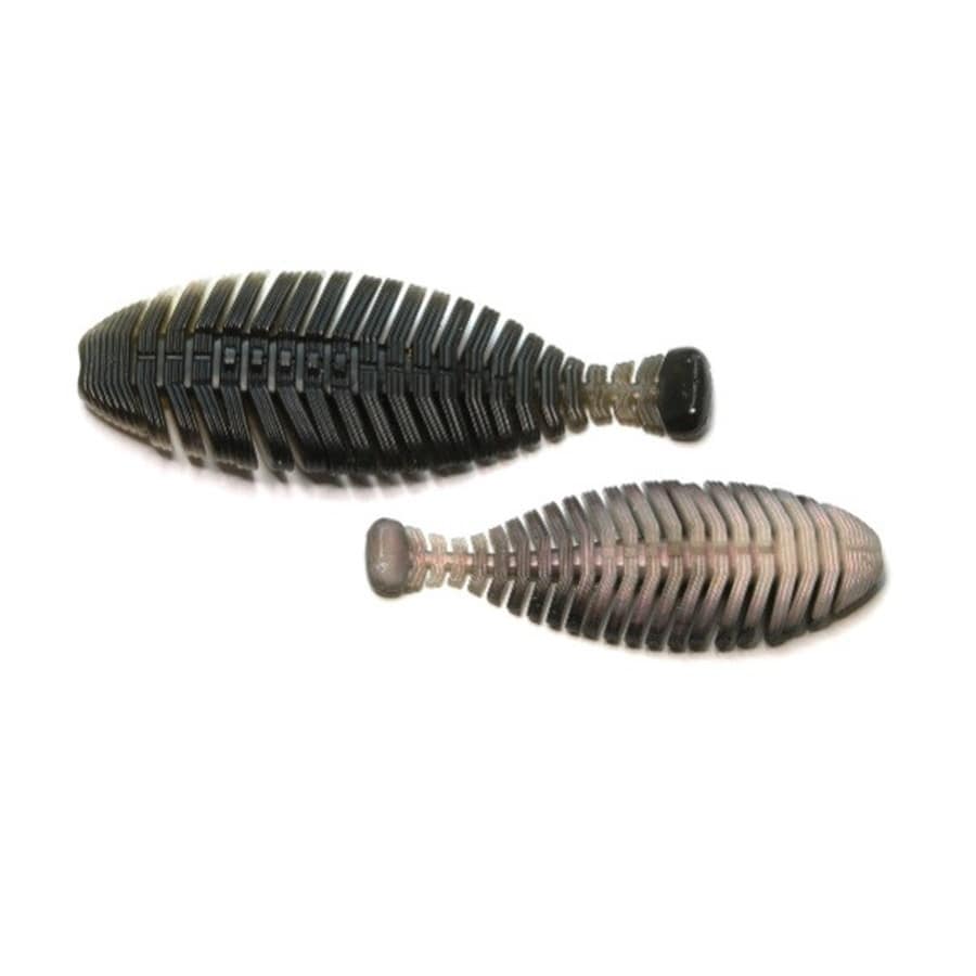 フラットボディのソフトベイトが有効である要素のひとつ「強い水押し」とそれに伴う「自発的なイレギュラースライドアクション」。ヒラタイラーは、それらに複雑さと乱水流による艶めかしさをプラスするために、深めのスリットを入れたブロック状の蛇腹ボディに設計。ボディに掛かるウォータープレッシャーの強弱によって全方位にうごめく艶めかしさをもたらしています。また、深めのスリットによってボディ全体でしっかりと水をグリップするため、常に複雑な波動を発しステイ時においても存在をアピール。従来のフラットワームでは生み出しにくかった繊細なロッドワークに対しても、くねるような柔らかな反応で魚を魅了します。スリットによる柔軟なボディは、フラットワームの欠点であるフッキングの悪さの改善にも大きく貢献しています。