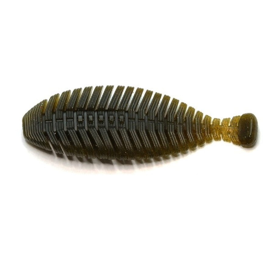 フラットボディのソフトベイトが有効である要素のひとつ「強い水押し」とそれに伴う「自発的なイレギュラースライドアクション」。ヒラタイラーは、それらに複雑さと乱水流による艶めかしさをプラスするために、深めのスリットを入れたブロック状の蛇腹ボディに設計。ボディに掛かるウォータープレッシャーの強弱によって全方位にうごめく艶めかしさをもたらしています。また、深めのスリットによってボディ全体でしっかりと水をグリップするため、常に複雑な波動を発しステイ時においても存在をアピール。従来のフラットワームでは生み出しにくかった繊細なロッドワークに対しても、くねるような柔らかな反応で魚を魅了します。スリットによる柔軟なボディは、フラットワームの欠点であるフッキングの悪さの改善にも大きく貢献しています。