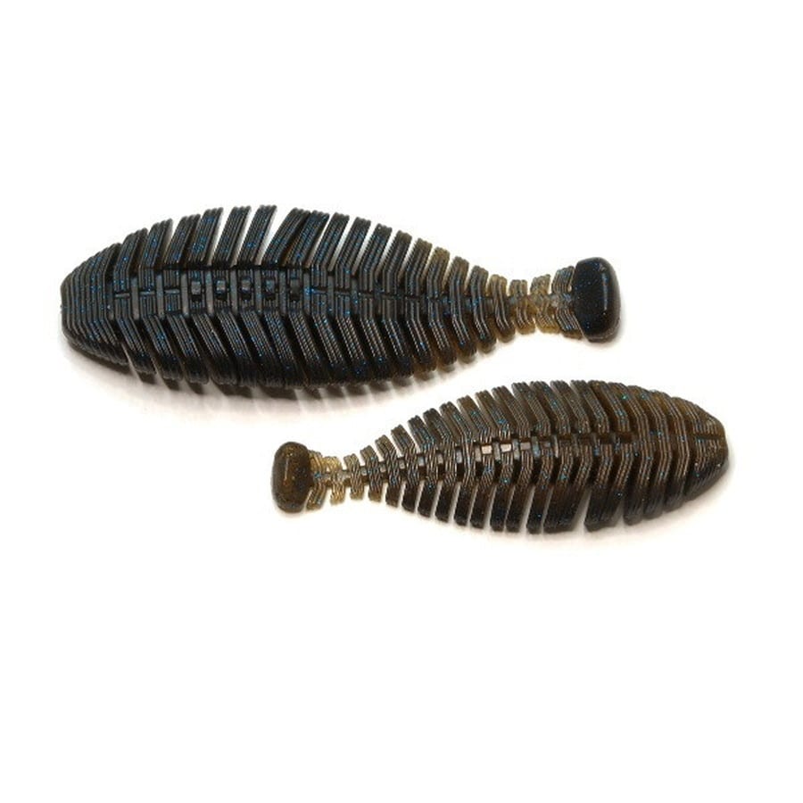 フラットボディのソフトベイトが有効である要素のひとつ「強い水押し」とそれに伴う「自発的なイレギュラースライドアクション」。ヒラタイラーは、それらに複雑さと乱水流による艶めかしさをプラスするために、深めのスリットを入れたブロック状の蛇腹ボディに設計。ボディに掛かるウォータープレッシャーの強弱によって全方位にうごめく艶めかしさをもたらしています。また、深めのスリットによってボディ全体でしっかりと水をグリップするため、常に複雑な波動を発しステイ時においても存在をアピール。従来のフラットワームでは生み出しにくかった繊細なロッドワークに対しても、くねるような柔らかな反応で魚を魅了します。スリットによる柔軟なボディは、フラットワームの欠点であるフッキングの悪さの改善にも大きく貢献しています。
