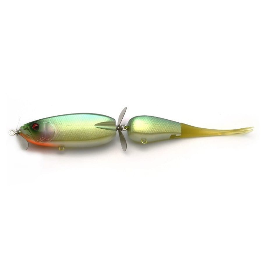 まったく新しいスタイルのジョイントビッグベイト。DOUBLE HEADERは、ボディフロントとジョイント部にペラを設置した、これまでにないまったく新しいスタイルのダブルスウィッシャー型ジョイントビッグベイトです。ストレートリトリーブでは前後のペラが回転するi字系大型ダブルスウィッシャーとして水面からサブサーフェスのレンジをトレースできます。(板オモリによるウェイト調整で任意のレンジをトレース可能)また、ロッドワークを加えれば、従来のダブルスウィッシャーが苦手とした左右への首振りを誰でも簡単に演出することが可能。線の誘いだけでなく点の誘いにも優れる革新的なプロップベイトです。★全長:220mm(テール含む)
