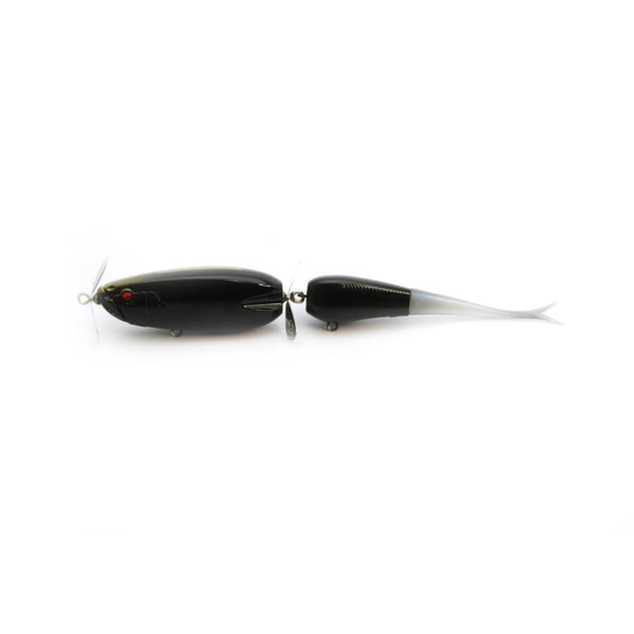 DOUBLE HEADERは、ボディフロントとジョイント部にペラを設置した、これまでにないまったく新しいスタイルのダブルスウィッシャー型ジョイントビッグベイトです。ストレートリトリーブでは前後のペラが回転するi字系大型ダブルスウィッシャーとして水面からサブサーフェスのレンジをトレースできます。(板オモリによるウェイト調整で任意のレンジをトレース可能)また、ロッドワークを加えれば、従来のダブルスウィッシャーが苦手とした左右への首振りを誰でも簡単に演出することが可能。線の誘いだけでなく点の誘いにも優れる革新的なプロップベイトです。