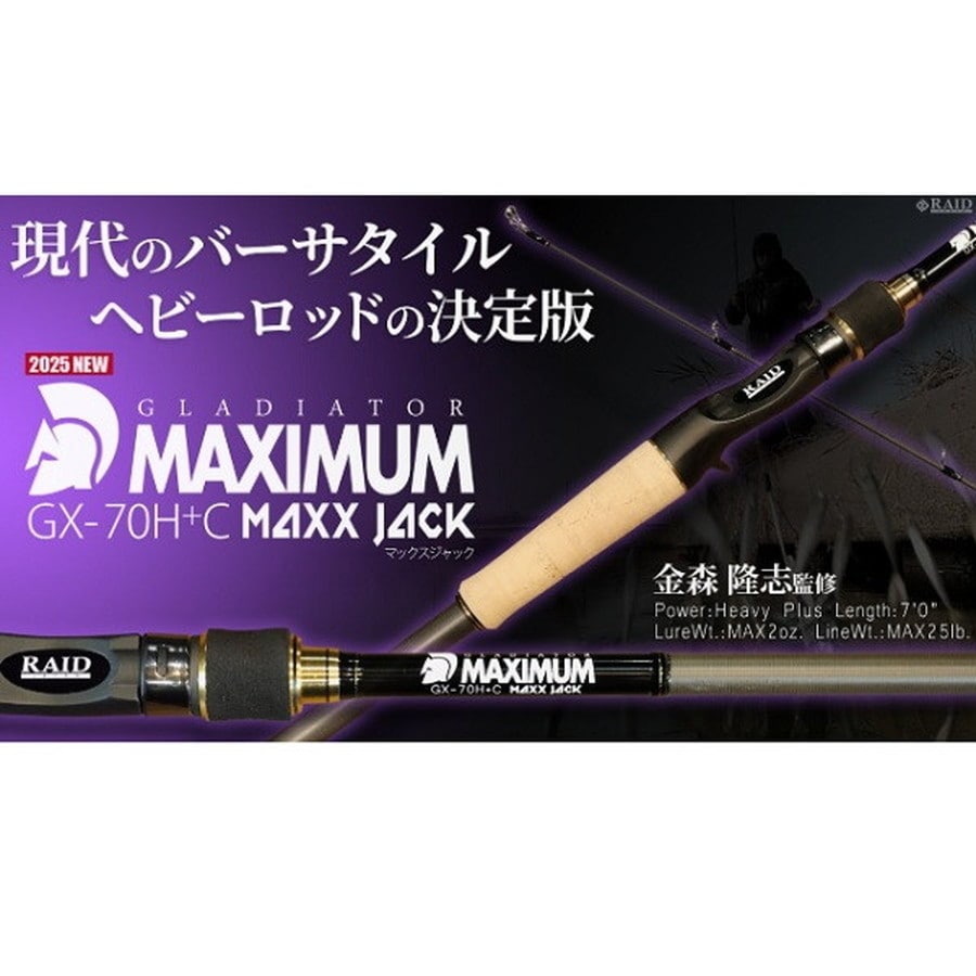 現代のバーサタイルヘビーロッドの決定版。GLADIATOR Antiシリーズで好評を博したGA-72HC「King Heavy」を2インチショート化、高弾性化した上でパワーを1ランクUPして生まれ変わったのが「MAXX JACK」。さらなるパワーフィッシングに対応するHeavy Plusではあるものの、ただ硬くて強い竿ではありません。硬いのに曲がる、硬いのに粘り強い、トルク溢れるパワーロッドに仕上がっています。ビッグベイトやスイムベイトによる横方向のパワーゲーム、ラバージグやテキサスリグなどを使用した縦方向のパワーゲームにプラスして、MUSCLE WIRE / GHOST WIRE NEXT LEVELにFISHROLLERを装着したバマストにも対応。フルチューブラーの高弾性ブランクスはTIPが垂れ過ぎず、ヘビーウエイトのルアーのキャスト~操作において抜群の使用感を得ることができます。ヘビーロッドのバーサタイル性をMAXまで高めたロッドが「MAXX JACK」です。