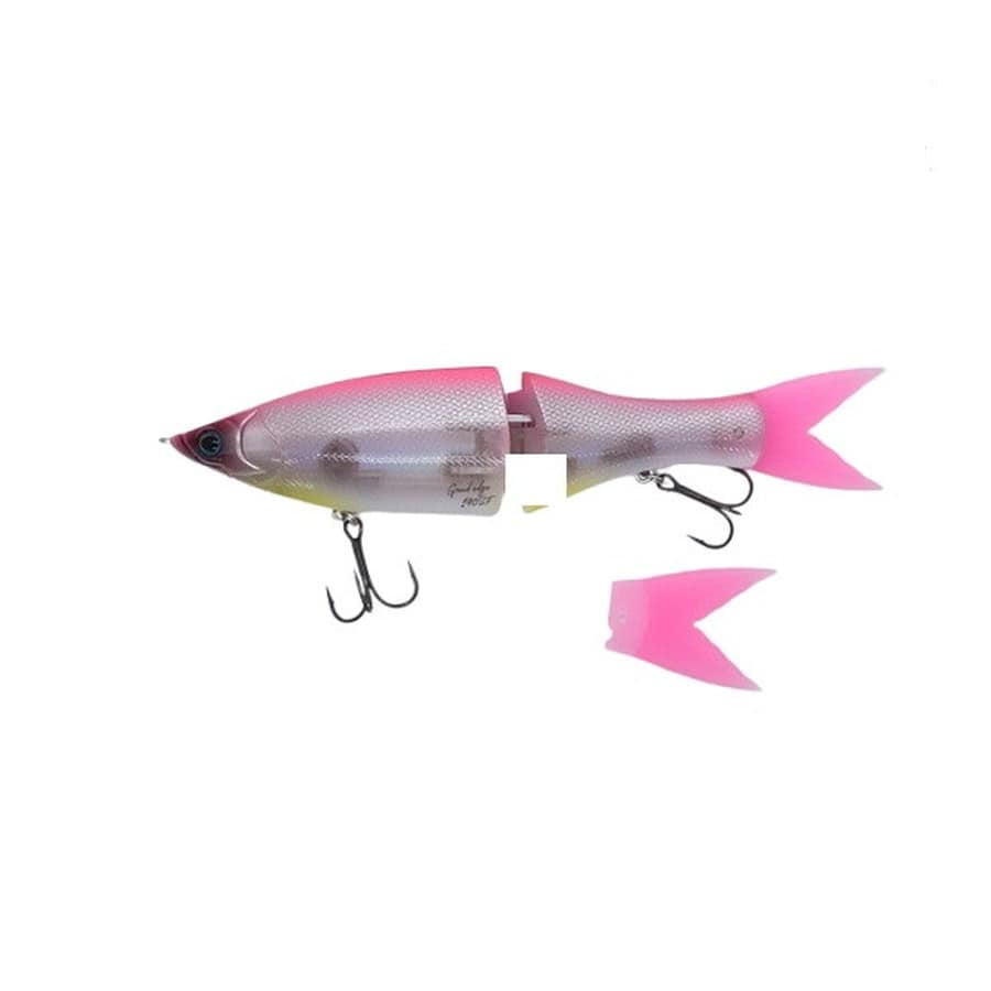 グランドエッジ最大の特徴は、ボディ上下に入ったスリットと8本の「EDGE」からなる「8 EDGE DESIGN」。スリットに水が通過することで過度なロールを抑えます。エッジを立ててカービングターンをするような感覚で操作でき、アングラーの意図した方向へルアーを導きます。意図的にリーリングで強弱を付けたり、ロッドアクションを追加することで、緩急自在なグライドアクションを演出可能。ジョイント部は小回りの効くフレキシブルモードとS字軌道を描きやすいタイトモードの2モードから選択できます。★全長:190mm