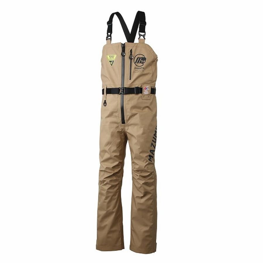 最大の特徴は4レイヤーという耐久性が非常に優れた防水・透湿生地を使ったことです。レインスーツに使われる透湿素材は3レイヤー仕様がほとんどですが、オフショアパンツIIIでは4レイヤーを採用し、とにかくタフであることを優先しています。そして、この丈夫な生地だからこそ、完全防水のYKK製アクアシールファスナーが使えるのです。着た瞬間に、オフショアフィッシングの臨戦態勢に入ることができるオフショアパンツ。ベルトループにインフレータブルウエストのベルトを通すことができ、胸ポケットにはスマホが入れられます。こうした状態で着用すれば、準備完了というわけです。プレジャーボートに乗ってひとりで出船しているときに、万が一の落水や漂流の際には、近海であれば命綱となるスマホを身に着けていれば連絡をとることができます。だから、スマホが入る胸ポケットが必要と考えます。また、ウエストベルトを締めてタイトな状態にすれば、落水の際に泳ぎやすい状態が作れます。フロントファスナーは荒れた海で船内トイレを使ってオシッコする際にとても重宝します。いちいち靴を脱いで着脱しなくても平気な、ブーツを履いたまま着脱できるブーツカット。まさに、オフショアフィッシングの戦闘服です。★M タン MZRP-580 ※実物と色が違って見える場合があります。あらかじめご了承下さい。